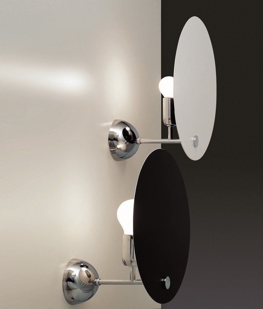 Серия Kuta - это настольный и настенный светильники с круговым отражателем из алюминия, который экранирует распределение освещения, что дает эффект солнечного затмения. Круговой экран окрашен в белый или черный цвет. Основание, металлические мелкие детали и полусферическая поддержка хромированы.