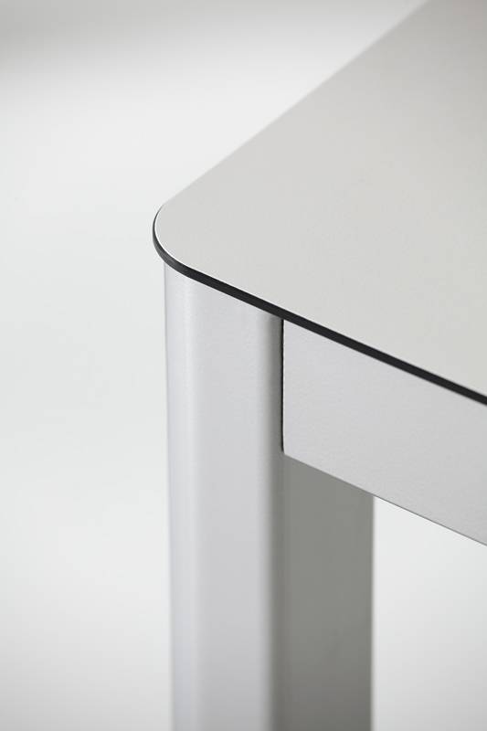 Столешницы столов выполнены из высококачественного материала HPL (высокого давления). Этот материал обладает высокой устойчивостью к механическим повреждениям и влаге. Ламинированная поверхность столешницы придаёт ей гладкую и ровную текстуру. Малая толщина материала позволяет создавать визуально лёгкие и изящные конструкции. Благодаря этому столы выглядят современно и эстетично. Они легко вписываются в любой интерьер.