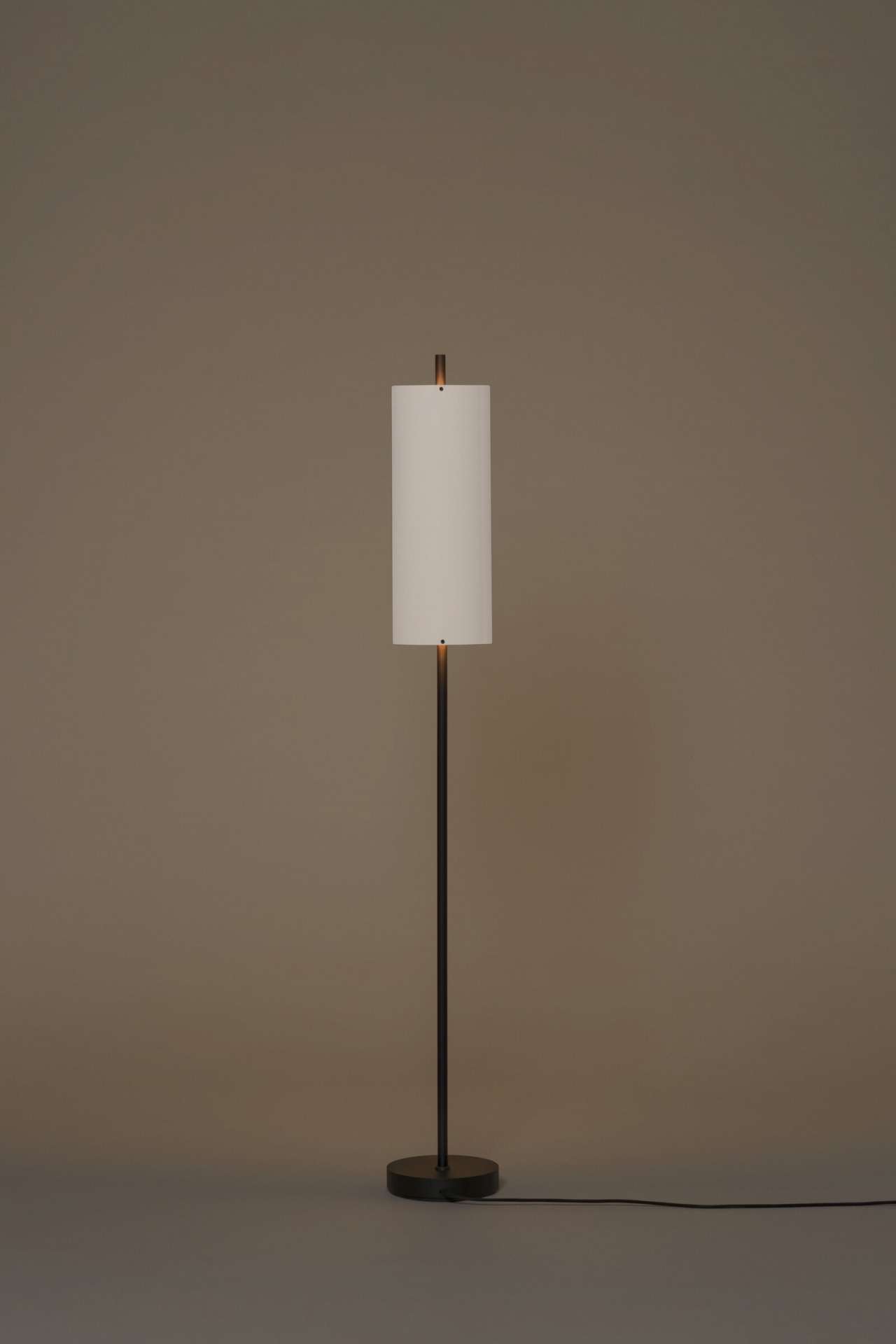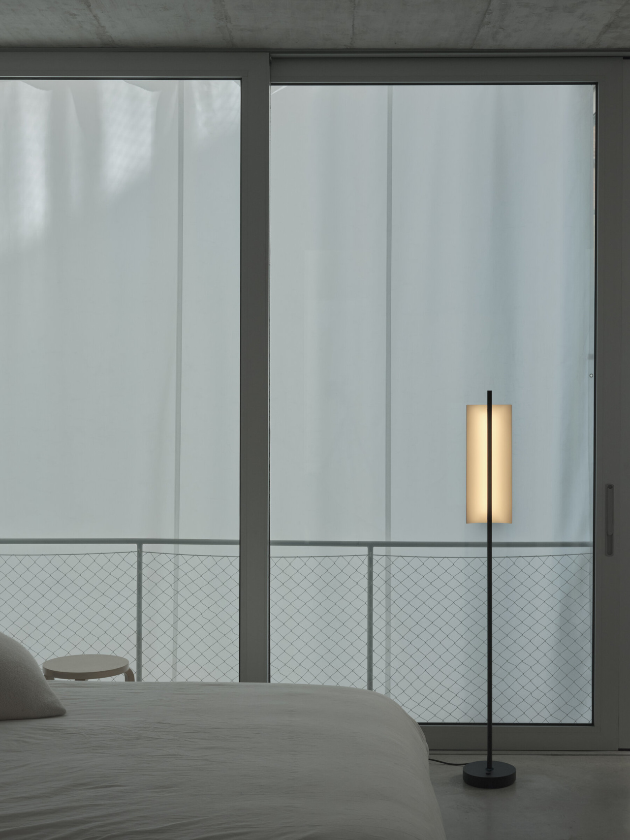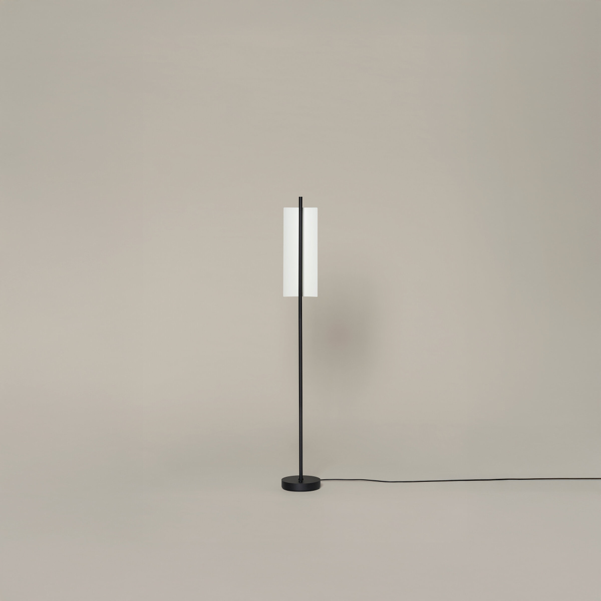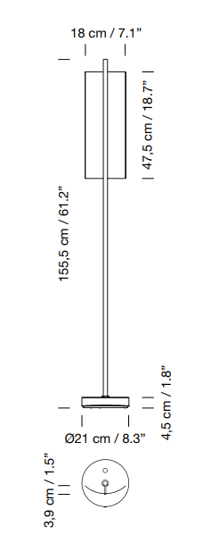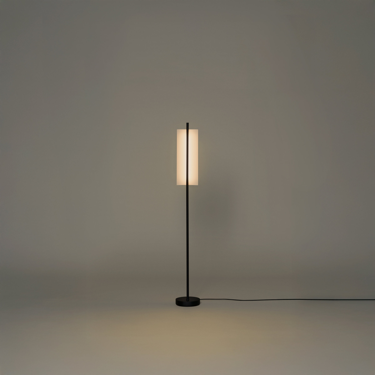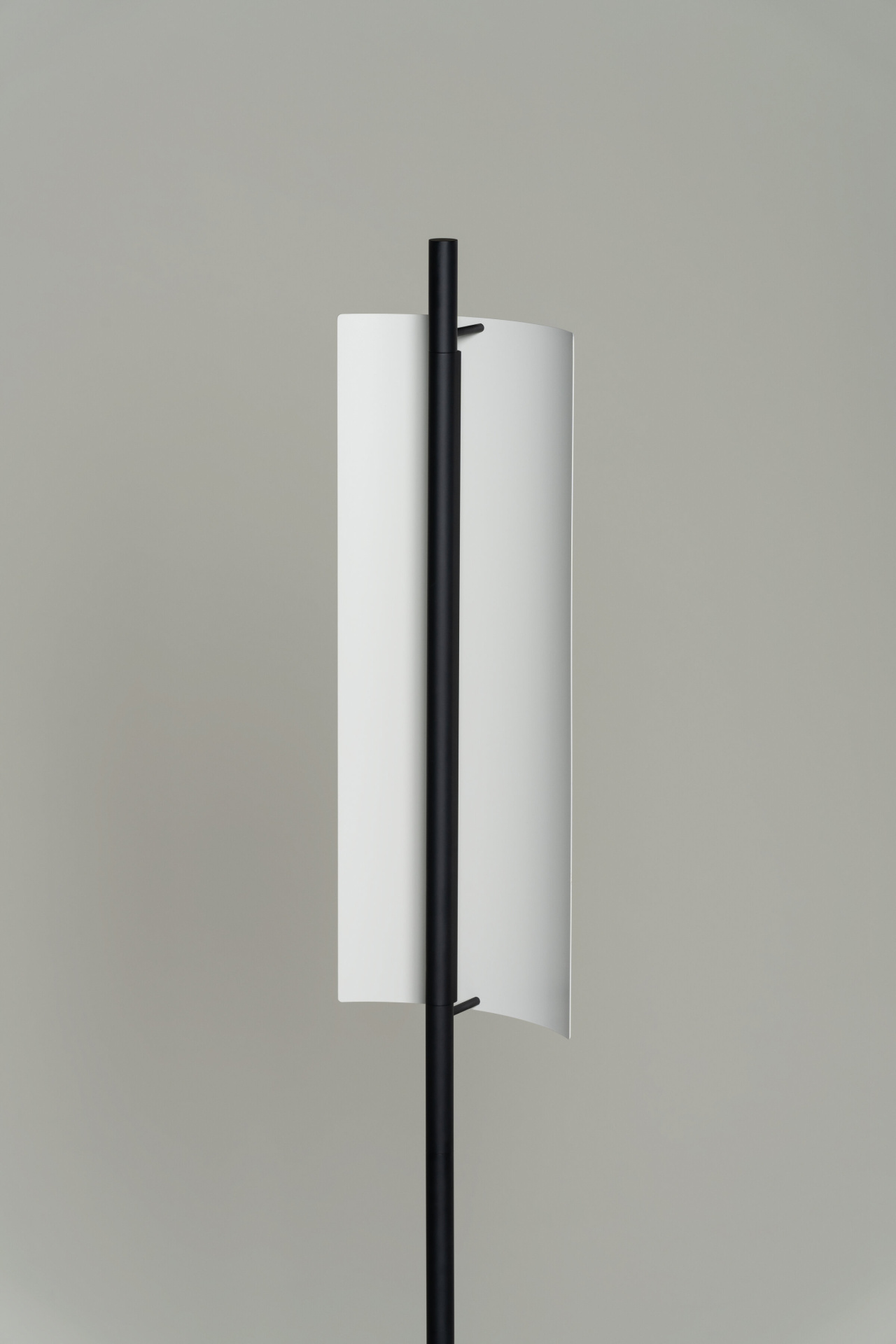 Внешне светильник Lámina 45 floor выдержан в сдержанной цветовой гамме. Бело‑серый металлический оттенок с глянцевым покрытием придаёт ему благородную сдержанность. Это позволяет органично вписаться в разные стилистические решения — от минимализма до современного классика. При этом нижняя часть конструкции выполнена в контрастном чёрном цвете. Матовая металлическая основа придаёт устойчивость и зрительно «приземляет» лёгкую световую линию. Создаётся баланс между воздушностью и основательностью.