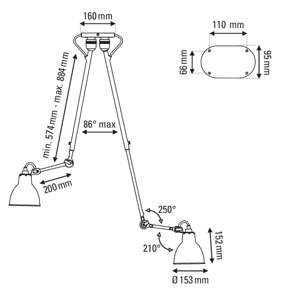 Потолочный светильник Lampe de Gras N°302 Double — это практичное и стильное решение для современного интерьера. Его главная особенность — два отдельных кронштейна с двойными шарнирами. Каждый из них можно настраивать независимо: менять угол наклона и поворачивать в нужную сторону. Благодаря поворотным отражателям свет легко направить точно туда, где он необходим.