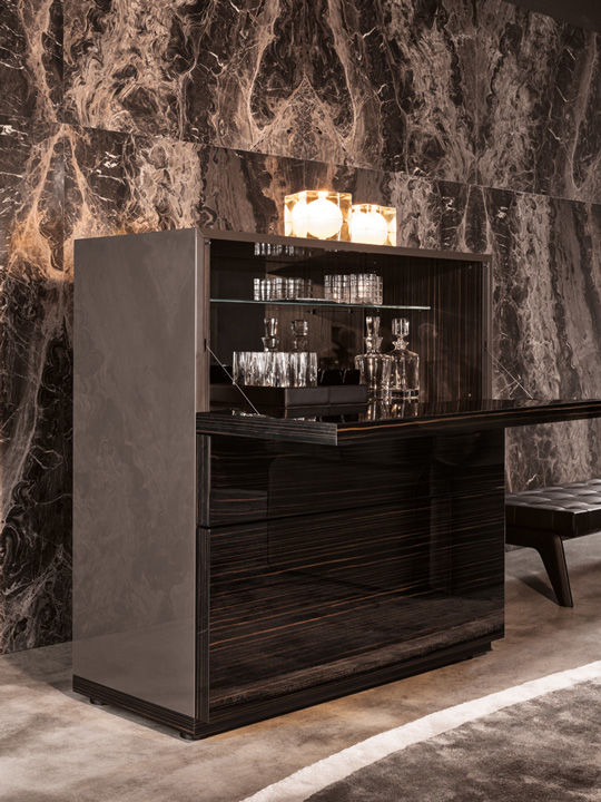 Бар Lang выполняется из качественной древесины. Для отделки используется шпон или лак в различных цветах. Бар Lang имеет две откидные дверцы, за которыми скрывается большое количество выдвижных ящиков и полок. Ножки изготавливаются из прочного металла. Более подробную информацию можно уточнить у менеджера или в PDF инструкции.n
