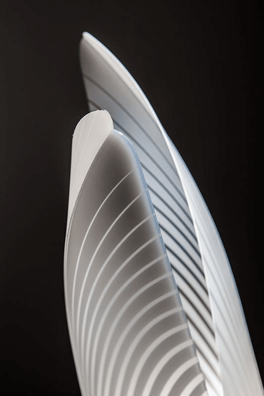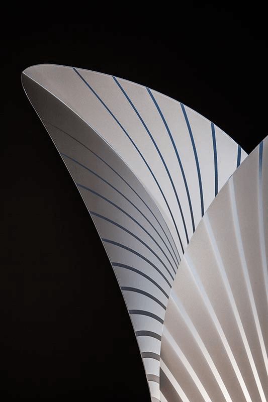 Основание светильника выполненный из высококачественной нержавеющей стали, не только придаёт ему современный и стильный внешний вид, но и обеспечивает долговечность и прочность. Уникальная форма основания, напоминающая двухмерный лист Opalflex®, воплощённая в трёхмерном пространстве, придаёт светильнику особую эстетическую привлекательность. Этот материал создаёт мягкий, приглушённый свет, который мягко рассеивается, создавая атмосферу комфорта и уюта.