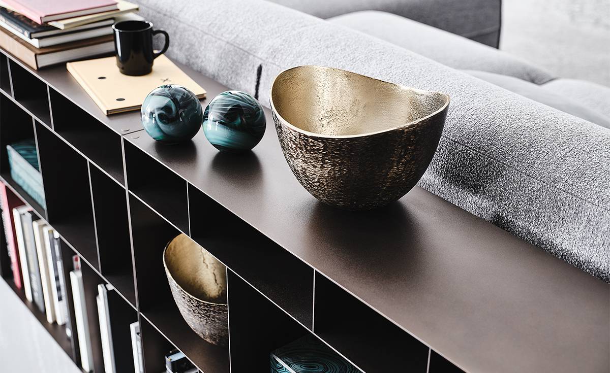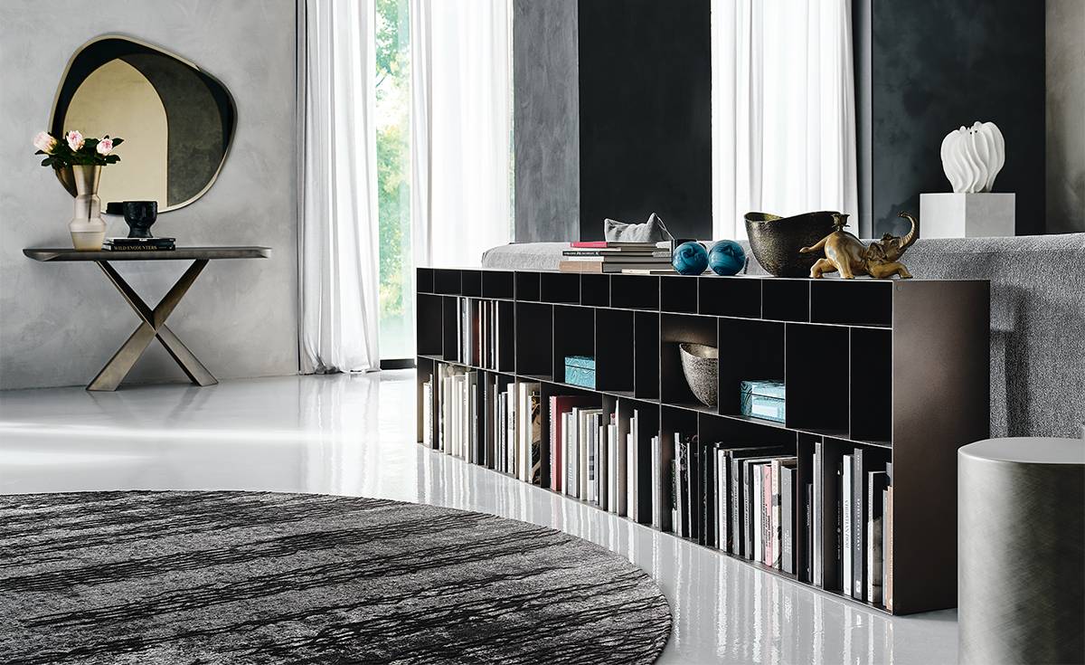 Стеллажная система Latitude, представляет собой универсальное решение для современного интерьера, основанное на принципах геометрической простоты и функциональной гибкости. Её дизайн строится на повторении универсального металлического модуля, что открывает бесчисленные возможности для адаптации под любые пространственные условия и стилевые предпочтения. Один базовый модуль, будучи многократно повторенным, позволяет создавать разнообразные композиции — вертикальные, горизонтальные или разделяющие пространство. Модули Latitude помогают оптимально использовать площадь, зонировать помещение без его загромождения и даже визуально корректировать пропорции комнаты.