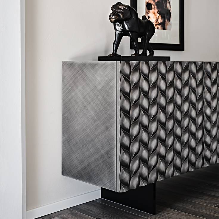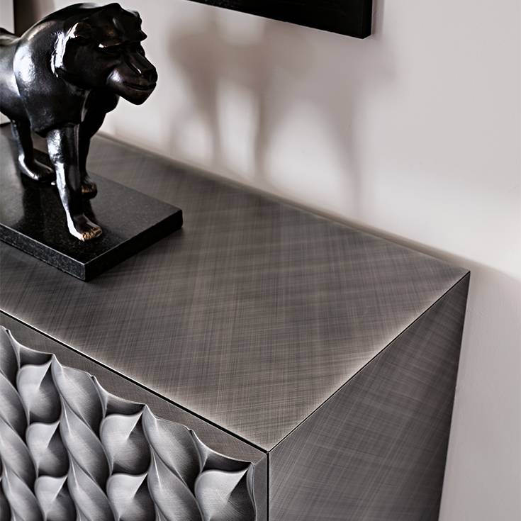 Коллекция Lavander — это комод с выразительным трёхмерным эффектом, создающий игру света и тени. Фасады с уникальной обработкой подчеркивают глубину металлического покрытия, образуя динамичный узор. Такой комод не просто выполняет функцию хранения, но и служит скульптурным акцентом, способным преобразить пространство жилой квартиры, а также добавить индивидуальности интерьерам премиальных отелей и ресторанов. Его главная особенность заключается в способности сочетать художественную выразительность с безупречным качеством исполнения.