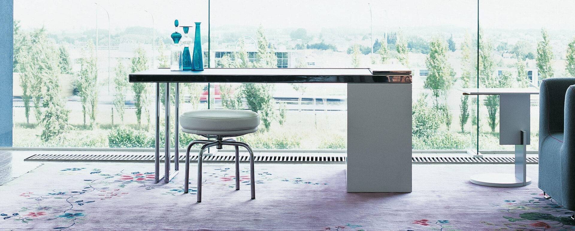 Вращающийся стул с полированными ножками из трехвалентной хромированной стали, придется по вкусу ценителям комфорта и минимализма. Сиденье наполнено пенополиуретаном. Обивка сделана из кожи. Также доступны дополнительные цвета, материалы и специальная версия стула, которую можно использовать на улице.