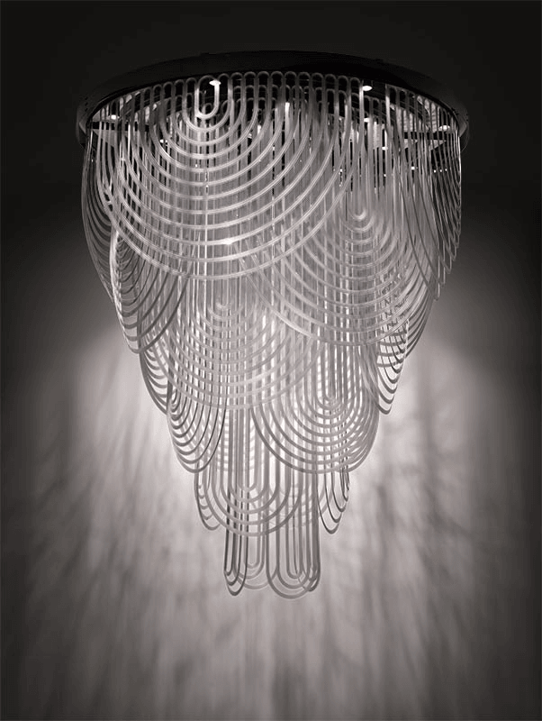 Особенностью светильника является его способность создавать уникальные световые эффекты. Свет от источников распределяется между «ожерельями» из материала Cristalflex®, создавая широкие и мягкие световые потоки, которые мягко обволакивают пространство. Это придаёт интерьеру уют и создаёт атмосферу роскоши и комфорта.