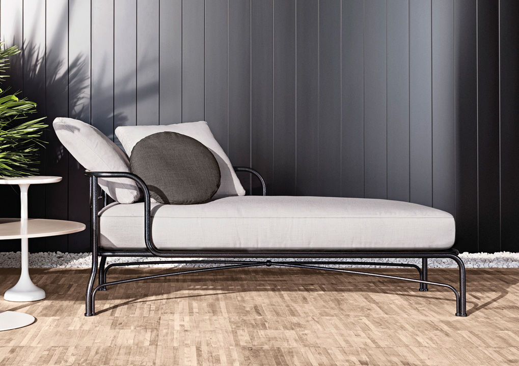 Коллекция Le Parc от фабрики Minotti включает в себя разнообразные мебельные предметы для использования на улице. Каркас кушетки Le Parc изготавливается из металла. Он покрывается лаком и специальным составом, защищающим от коррозии. В качестве наполнителя применяется пенополиуретан. Кушетка доступна в обивке из ткани или кожи различных цветов и состава. Кушетку можно использовать на улице, благодаря использованию специальных влагостойких материалов. Подробности уточняйте у менеджеров.
