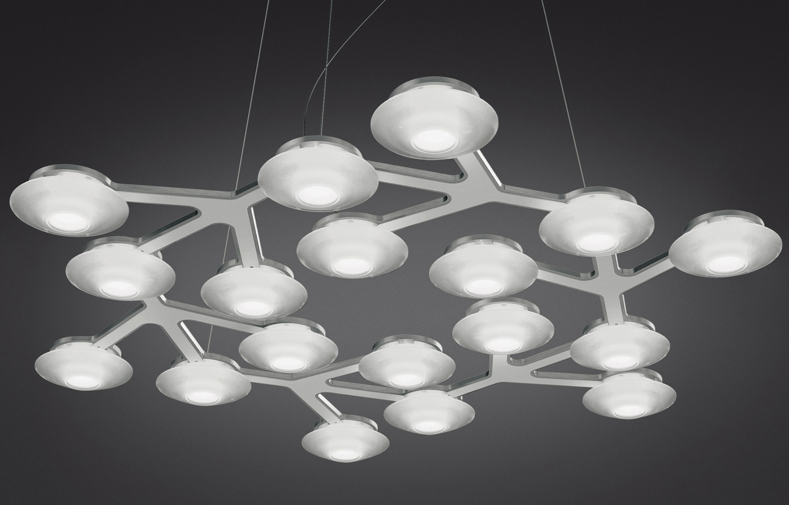 Потолочный светильник LED NET выполнен из окрашенного алюминия и имеет сложную ветвистую форму с лампами вместо листьев. Оригинальный дизайн дает интересный эффект игры света и тени. В качестве источника света используются светодиоды:18 LED 3000K, 1865lm.