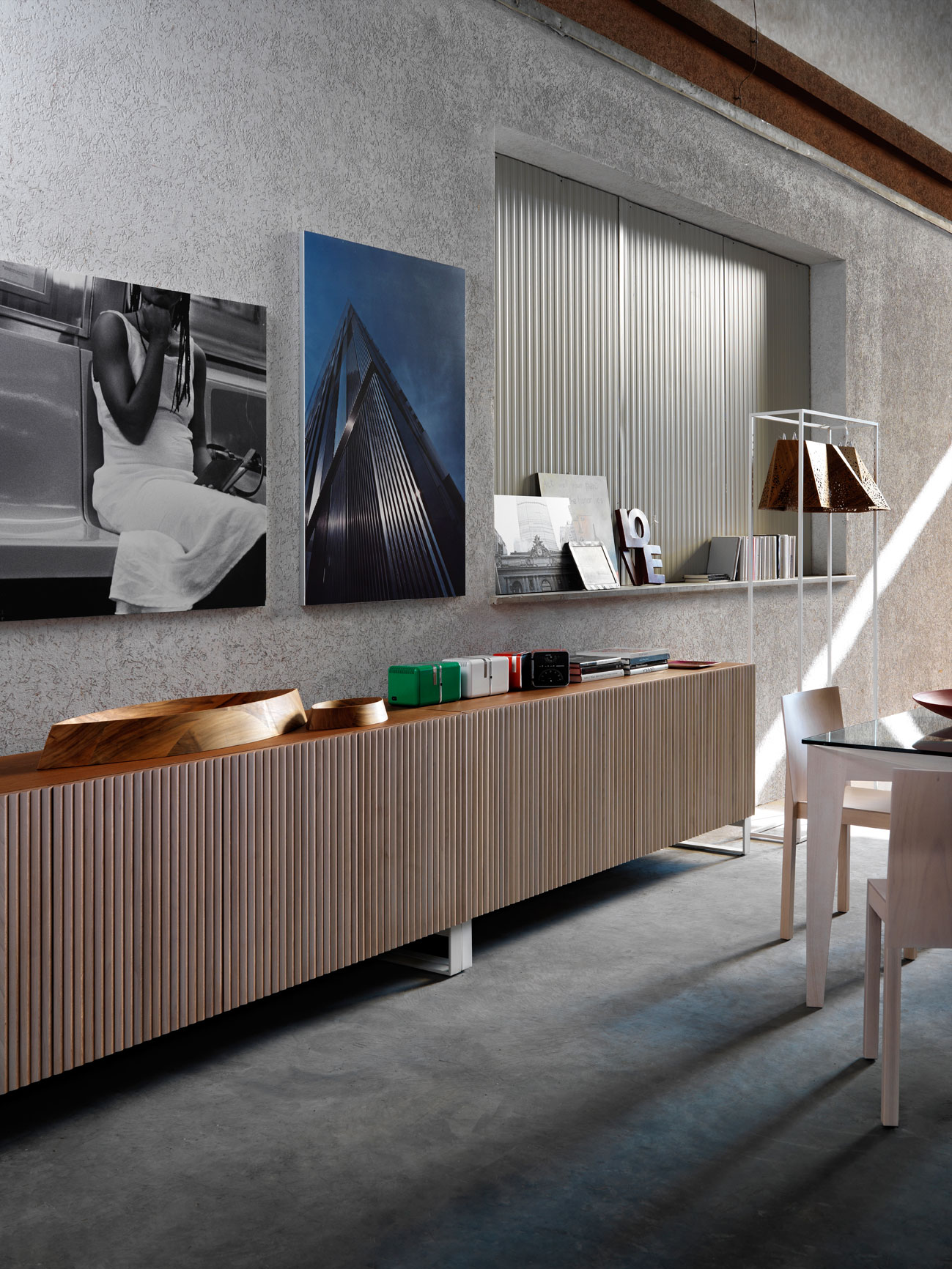Модель Leon обладает впечатляющим оптическим эффектом, который определяет его основную характеристику: выглядеть по-разному в зависимости от точки наблюдения. Если смотреть прямо, то фасады украшены узором из разноцветных вертикальных линий, однако смотря на них со стороны, преобладает светлый или темный однородный цвет. Благодаря игре теней, которая создается за счет окружающего освещения, этот эффект присутствует также в версии с однородной, белой отделкой.nДоступны различные размеры комода Leon, с которыми вы можете ознакомиться в PDF-инструкции.n