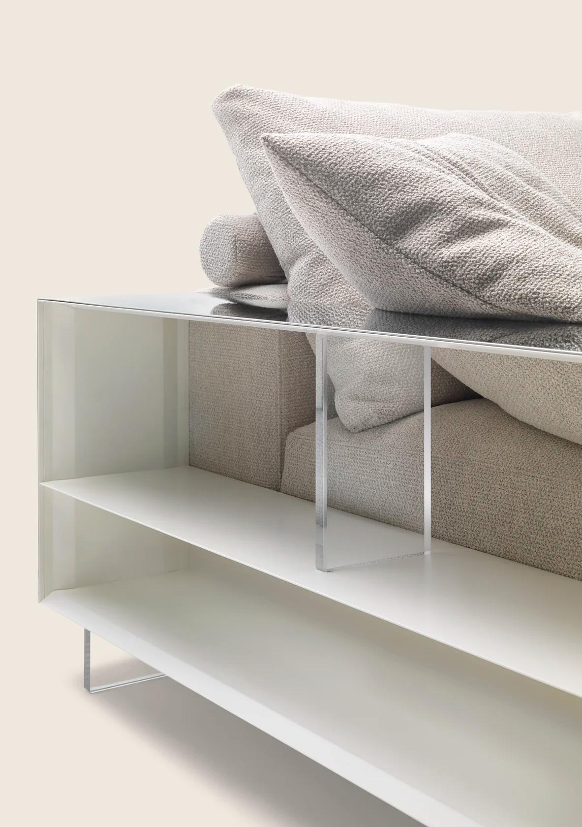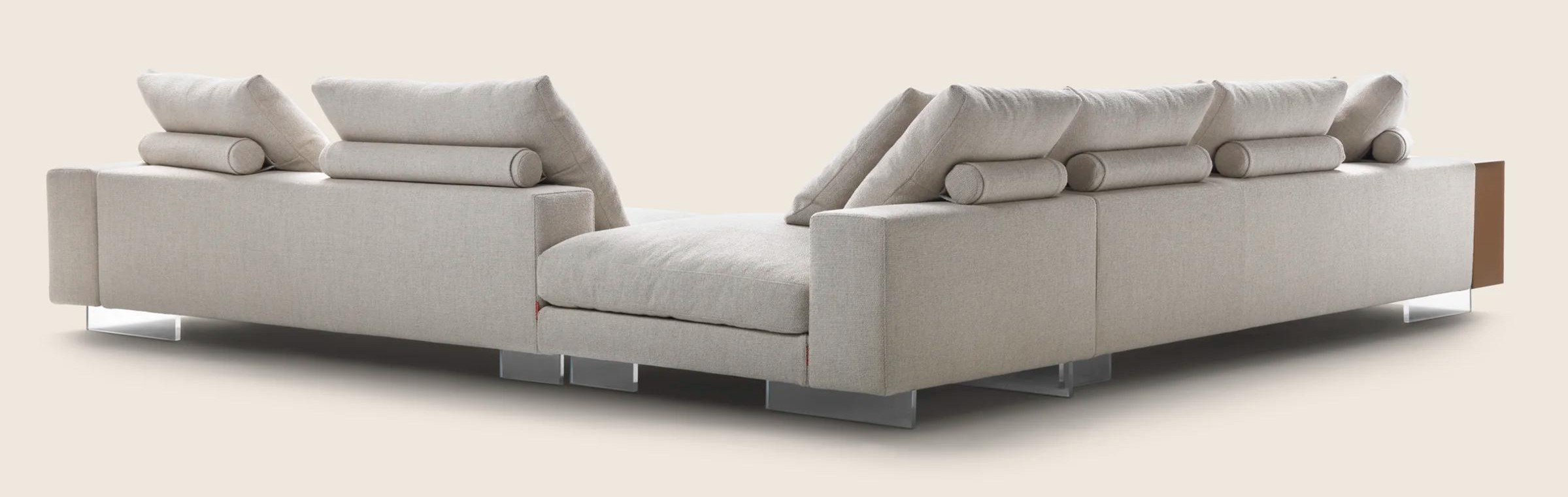 Конструкция дивана, представленная в двух вариантах — классическом прямом и гибком модульном, — сочетает в себе универсальность и безупречный комфорт, характерные для мебели Flexform. Главная отличительная черта Lightpiece — визуальная легкость. Создается впечатление, будто диван парит в пространстве. Этот эффект достигается благодаря прозрачным глянцевым ножкам из метакрилата.