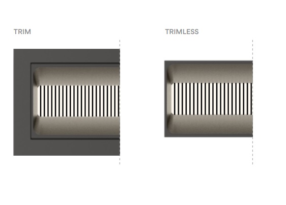 Версия с обрамлением (Trim) имеет декоративную лицевую рамку, которая выделяет форму светильника и добавляет выразительности. Обрамление доступно в разных цветах — белый, чёрный, серый, золото, серебро — и подбирается под стиль интерьера. Этот вариант упрощает монтаж и маскирует возможные неровности потолка, особенно в сложных условиях.