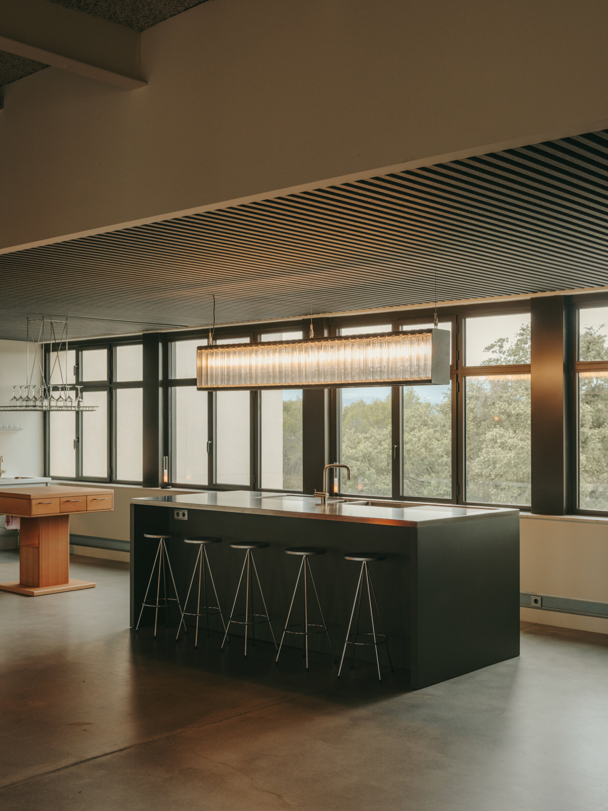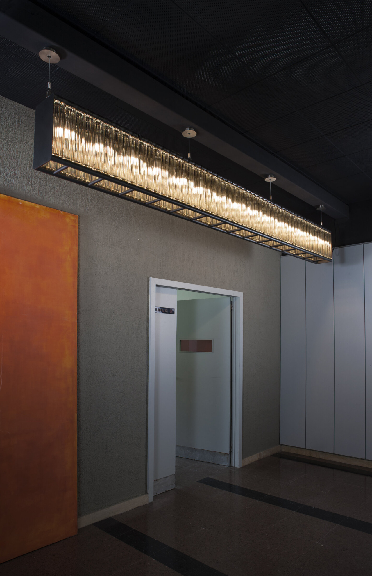 Светильник Línea Estadio доступен в четырёх вариантах длины — от 115 см до 458 см. Можно выбрать компактную модель на 115 см для небольшого уголка, среднюю на 230 см для обычной комнаты, более внушительную на 344 см для просторного помещения или масштабную на 458 см для залов с высокими потолками. Кроме того, высоту подвеса можно регулировать — максимум до 400 см. Такая гибкость даёт возможность гармонично вписать светильник в разные интерьеры, независимо от высоты потолков.