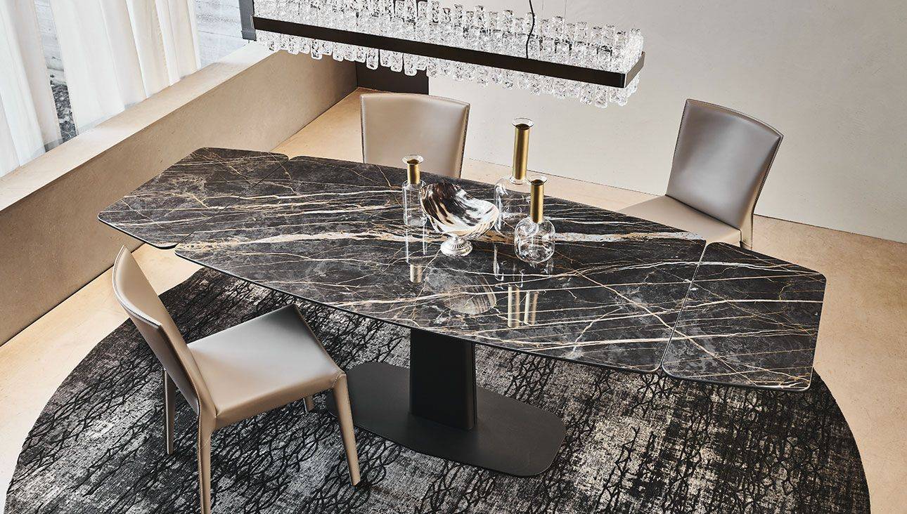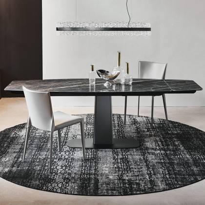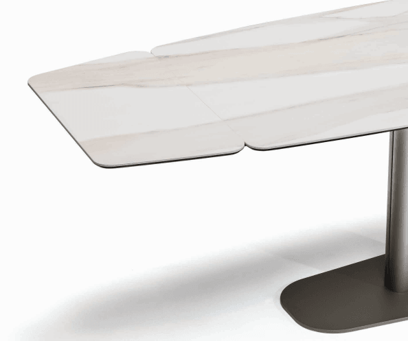 Linus — раздвижной стол со стальным основанием от фабрики Cattelan Italia. Основание модели может быть окрашено в следующие цвета: титан, графит или черный. Столешница и дополнительные расширители выполнены из керамики Calacatta, Alabastro, Ardesia, Golden Calacatta, Portoro или Sahara Noir. Стол доступен в двух размерах и может быть с прямоугольной столешницей. Более подробную информацию можно уточнить у менеджера.