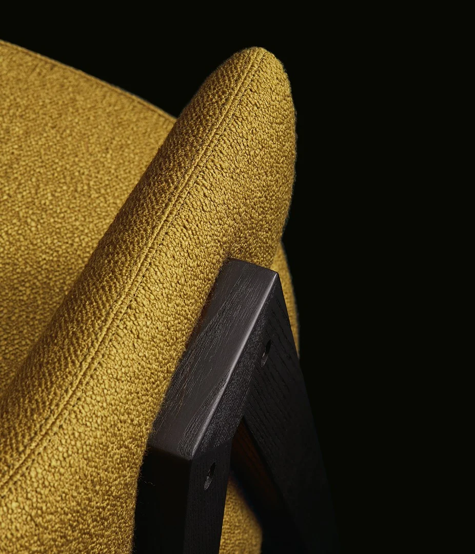 Каркас изделия выполненное с архитектурной четкостью, подчеркивает строгость и скульптурную выразительность. При этом мягкая спинка, изгибаясь плавными линиями, создает ощущение уюта и комфорта. Этот контраст превращает функциональный предмет в нечто большее — объект, который хочется не только использовать, но и созерцать.