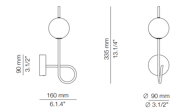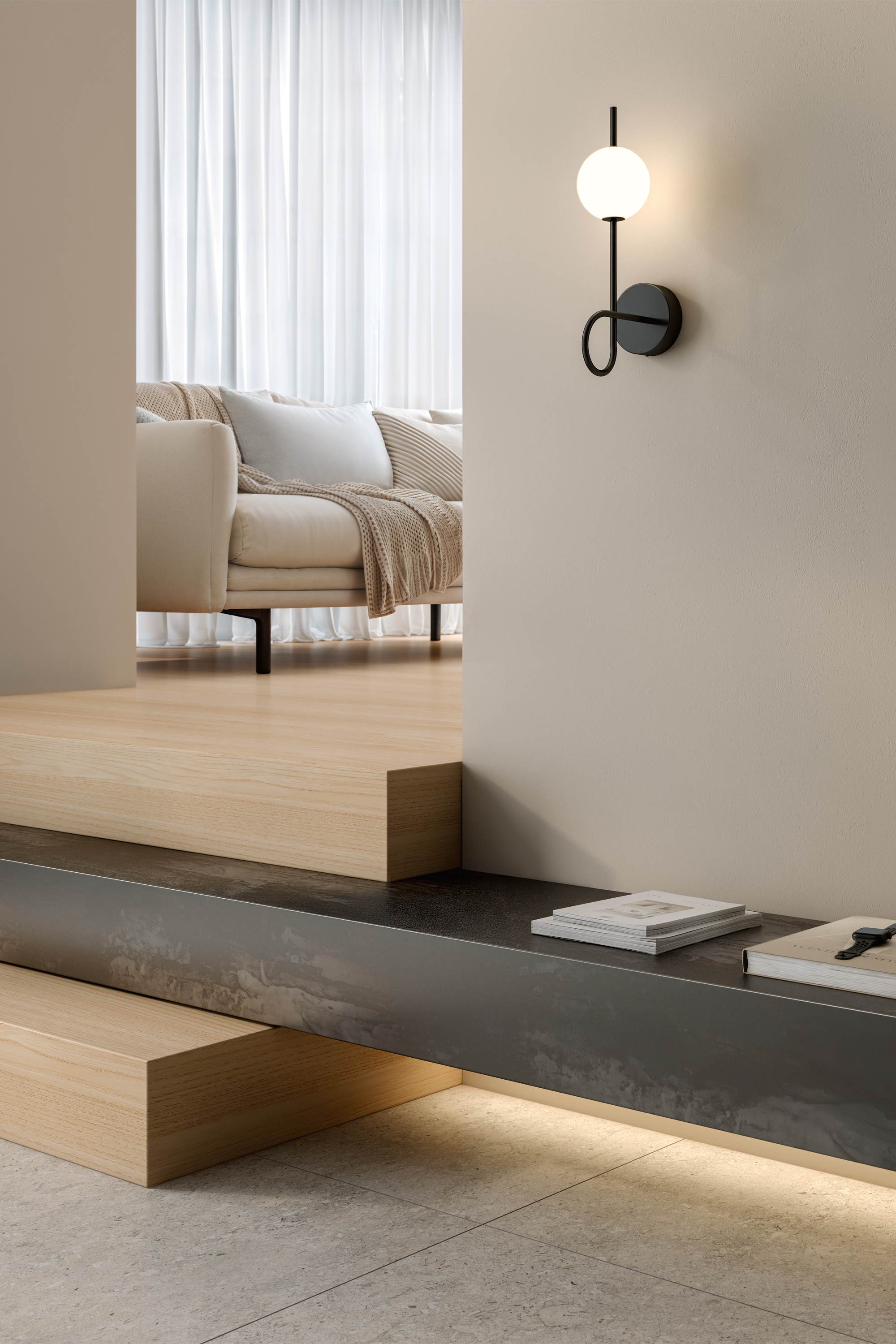 Светильник Loop Wall можно повесить двумя способами: со стеклянным шаром вверх или вниз. Это позволяет подобрать оптимальный вариант для конкретного интерьера.