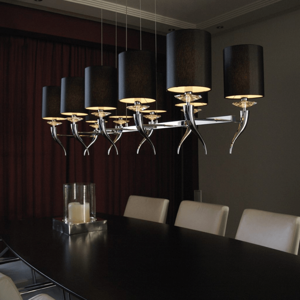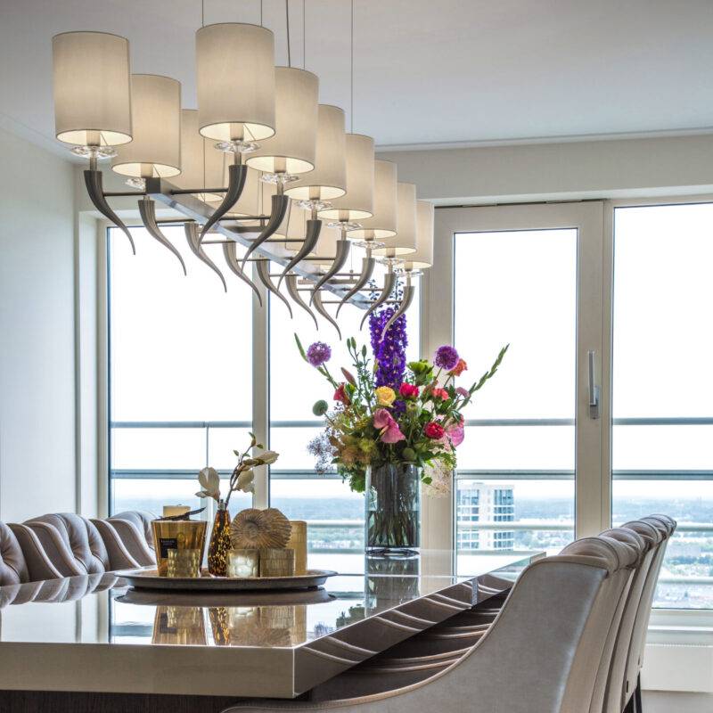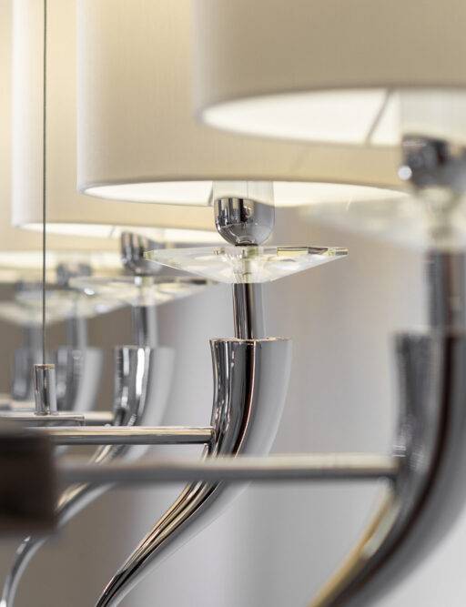 Каждый светильник, будь то композиция с пятью, шестью или десятью плафонами, представляет собой целостную и сбалансированную инсталляцию, где каждая «рука» с любовью направляет свет, чтобы он струился вниз переливающимся водопадом. Это рукотворное произведение искусства, где сияние тысяч кристаллов рождает в интерьере атмосферу безмятежности и роскоши.