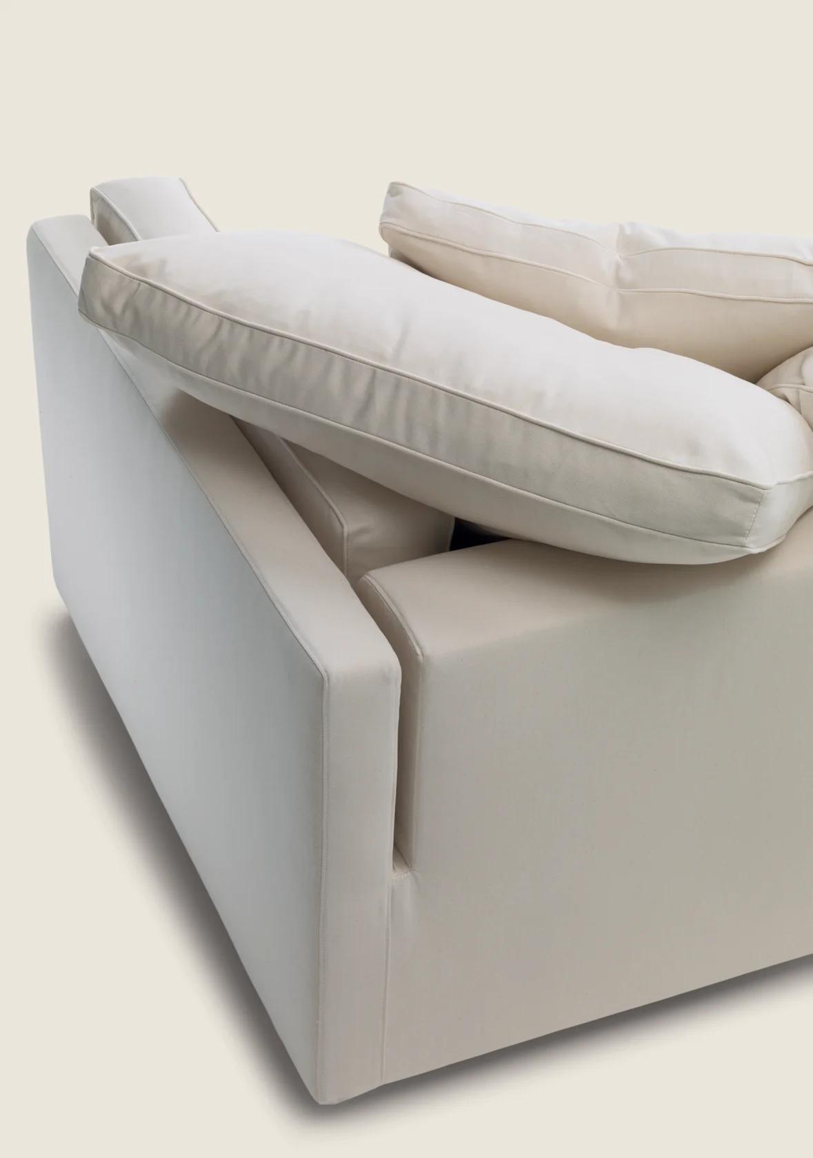 Мягкие подушки сиденья украшены изящной простежкой. Это демонстрирует высокое мастерство исполнения, характерное для коллекции Flexform. Дополнительные подушки наполнены стерилизованным гусиным пухом. Они имеют сертификат Assopiuma с золотой этикеткой. При желании можно заказать дополнительные подушки за отдельную плату.