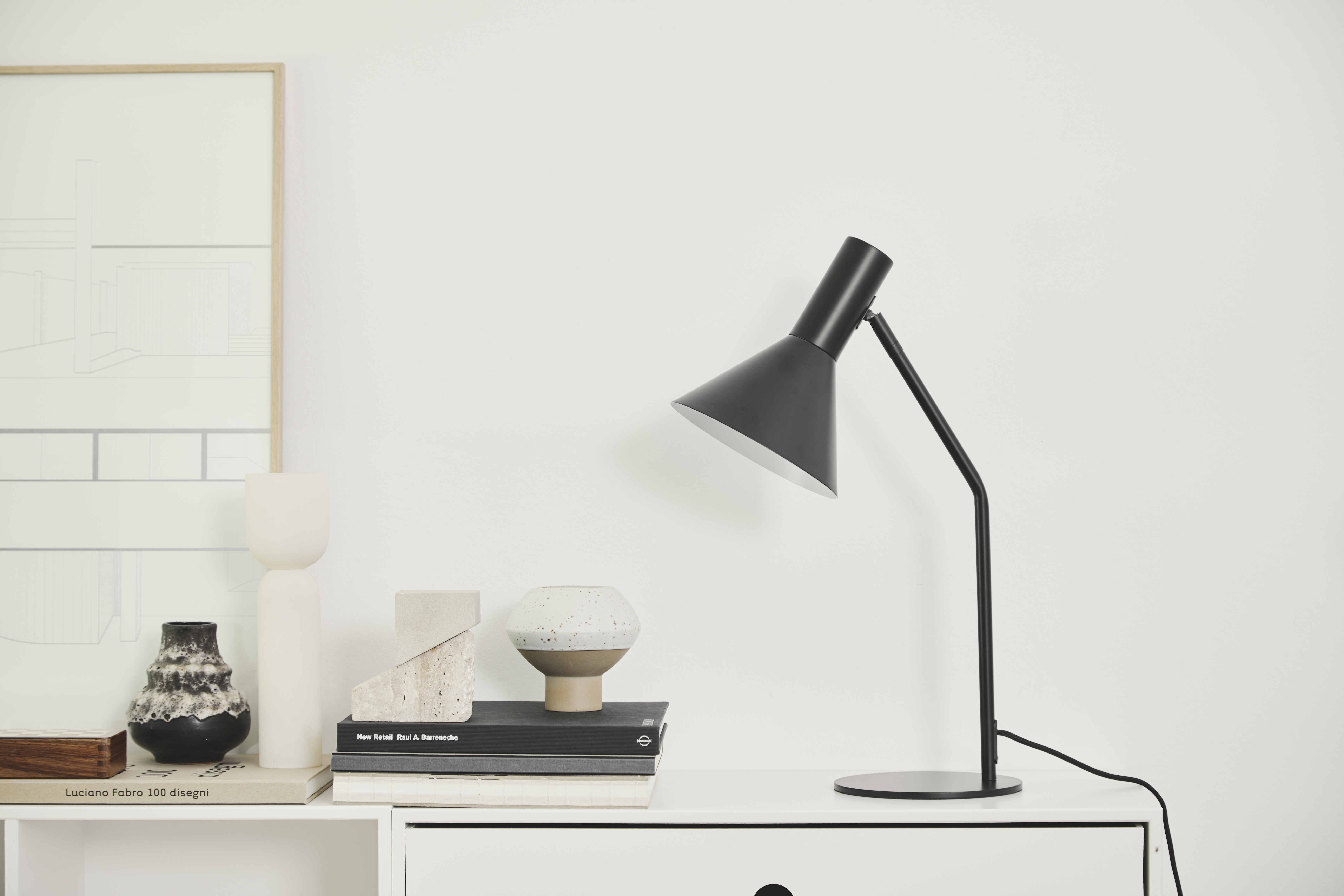 Настольный светильник Lyss Table — лаконичная и функциональная модель. Его конусообразный плафон с белой отражающей внутренней поверхностью направляет свет точно в нужную зону. Благодаря шарниру между плафоном и кронштейном можно легко отрегулировать угол наклона, подстраивая освещение под свои нужды.
