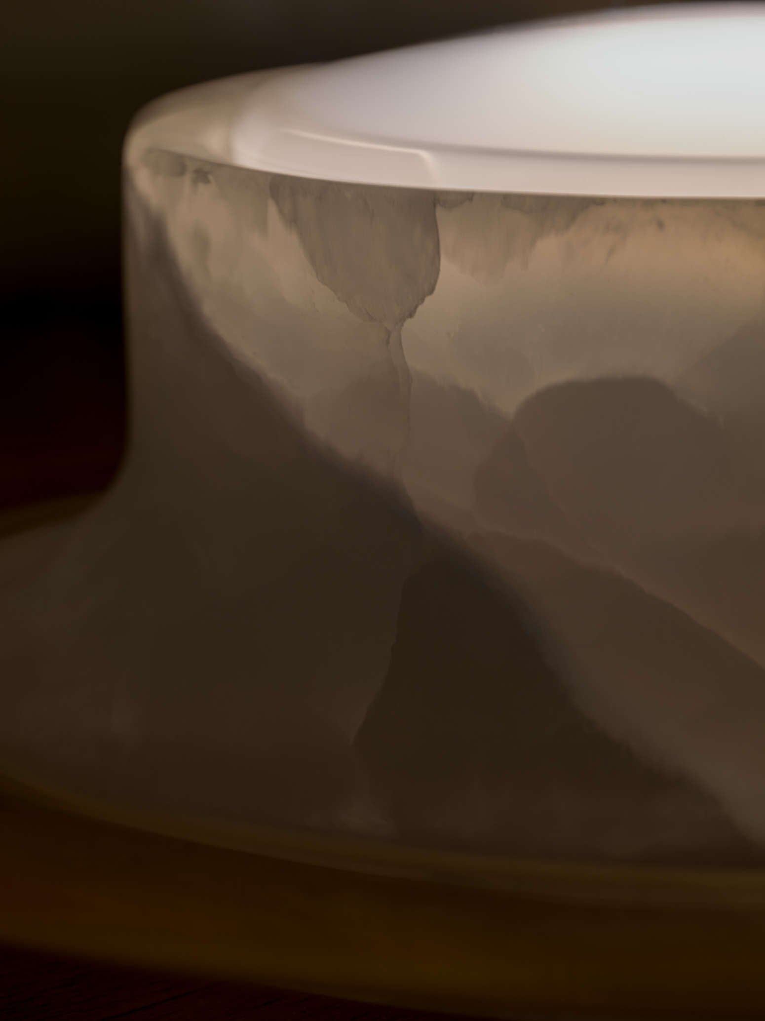 Свет исходит из основания из оникса и устремляется вверх. Оживляя извилистые прожилки халцедона, он достигает центральной ониксовой пластины. Игра света создаёт завораживающий эффект. Она раскрывает природную уникальность каждого экземпляра — естественные дефекты стекла и неповторимая структура камня делают лампу поистине единственной в своём роде.