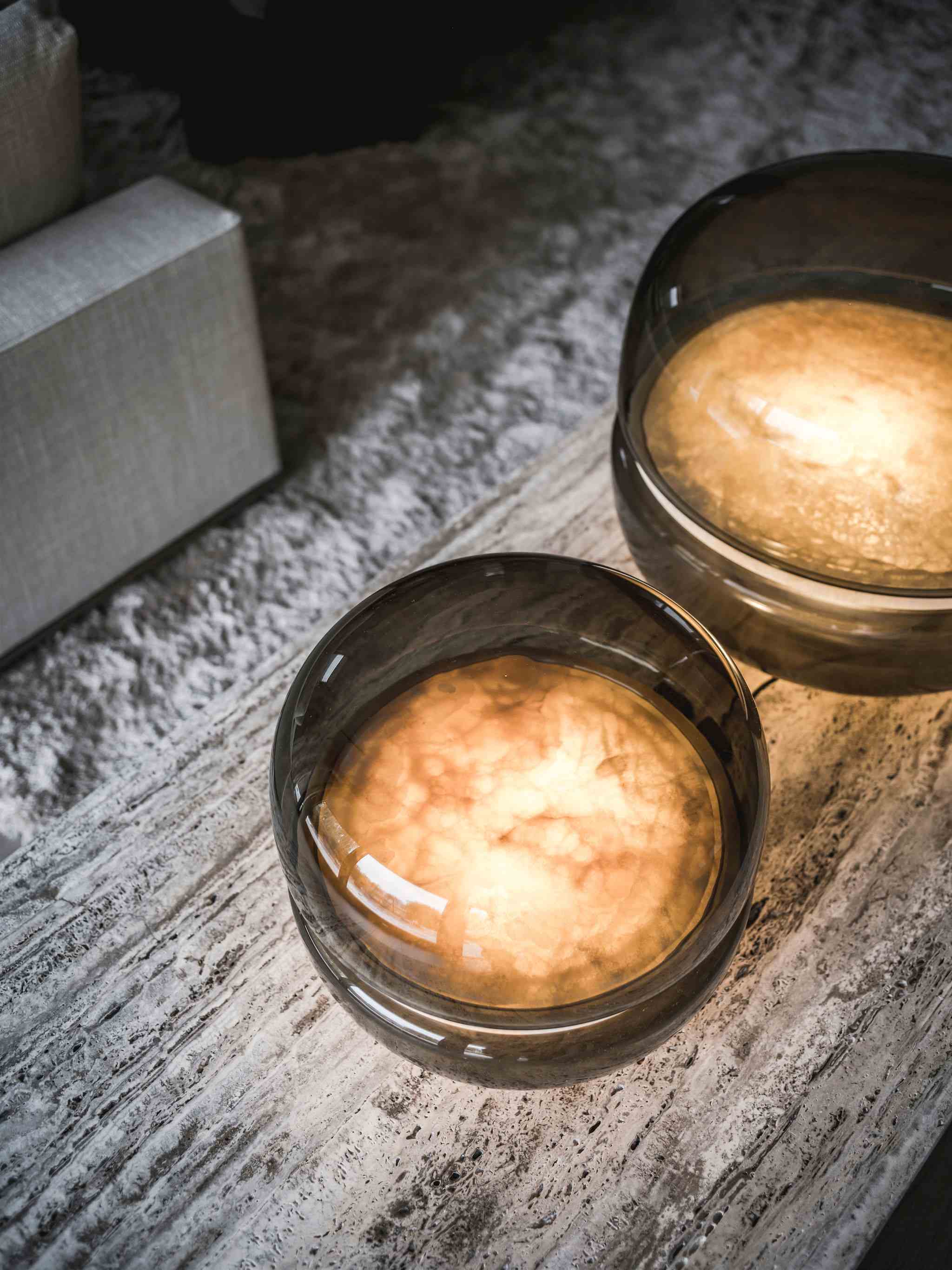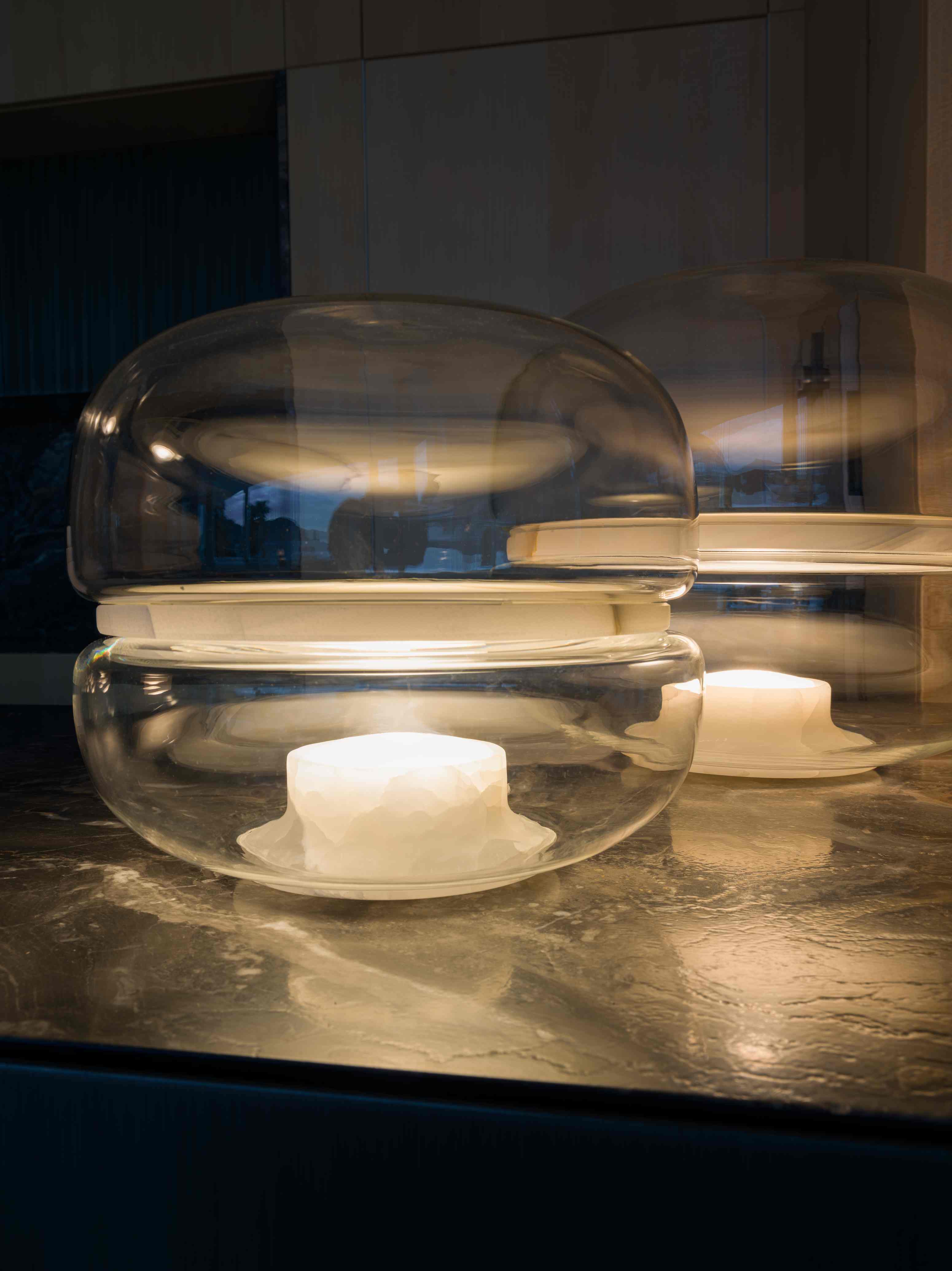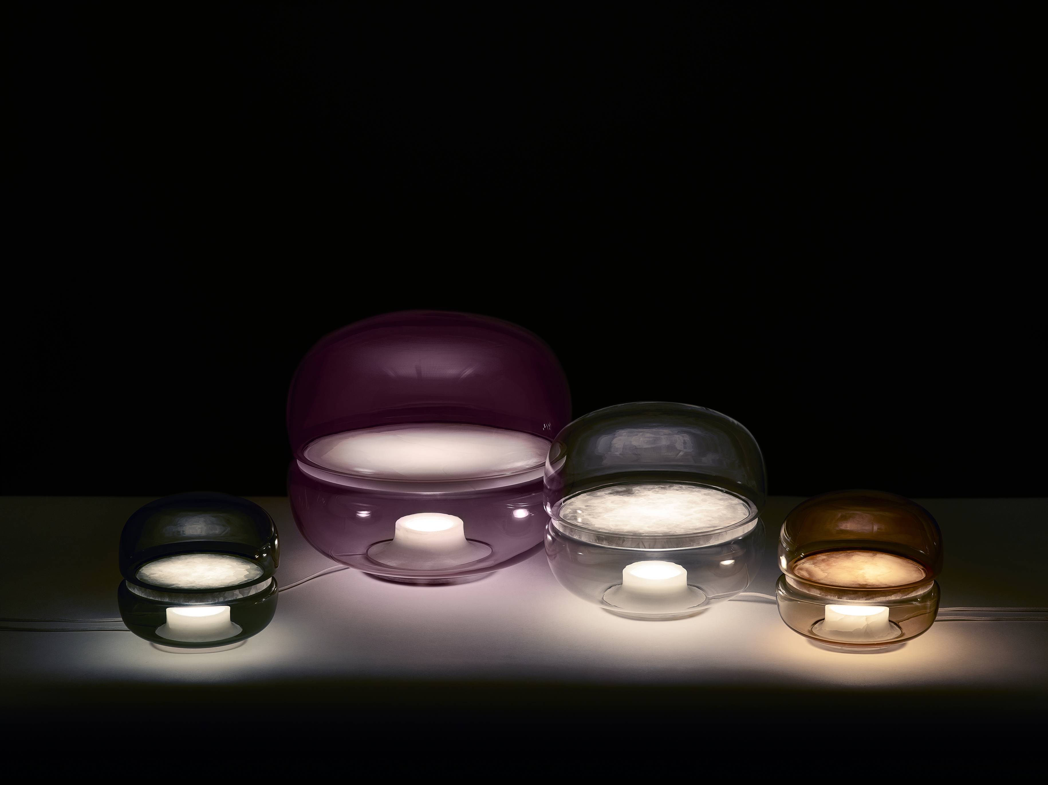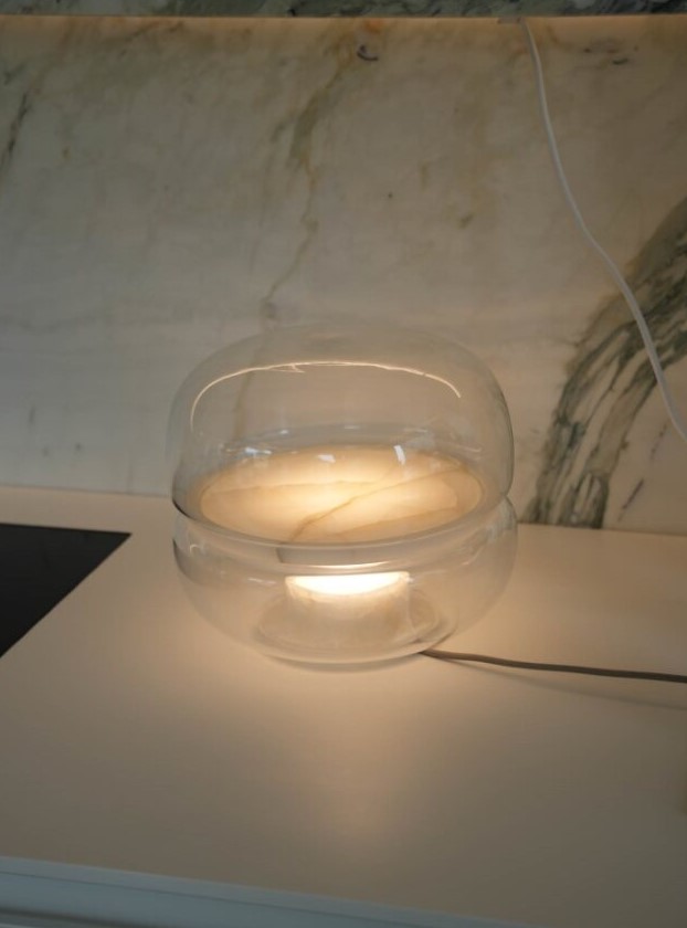 Настольная лампа Macaron — воплощение изысканной эстетики, вдохновлённой красотой кристаллических структур. В её дизайне тонкий художественный замысел соединяется с природными материалами. Камень, заключённый в куполообразные конструкции из выдувного стекла, превращается в миниатюрный лунный пейзаж. Этот пейзаж словно парит в собственном космосе.