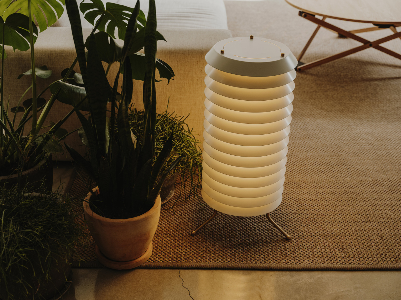 Напольный светильник Maija 30 floor передаёт особую атмосферу балтийских городов. Там улицы часто слабо освещены, а тёплый свет из домов мягко пробивается наружу, создавая уютное настроение. Светильник повторяет эту идею: он словно излучает свет изнутри.