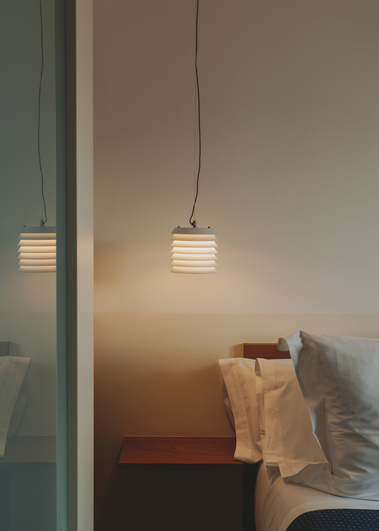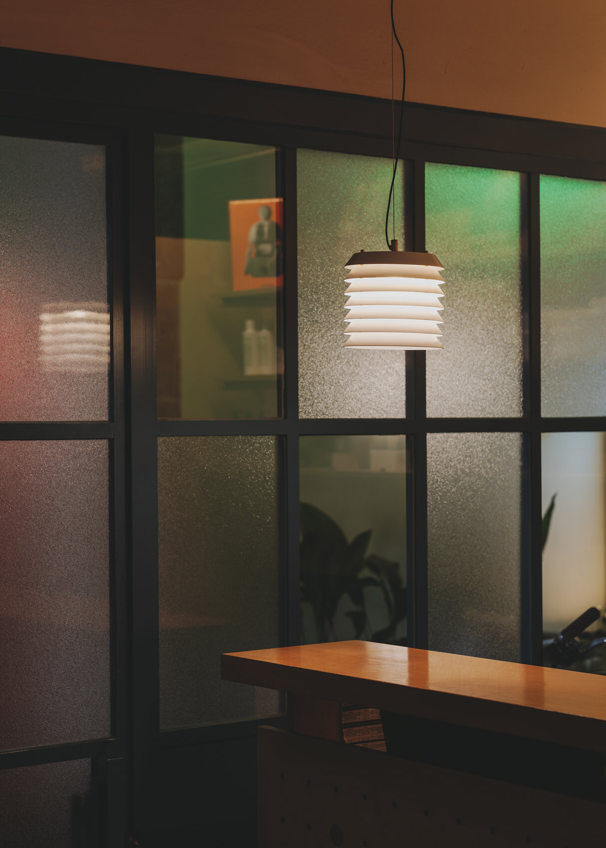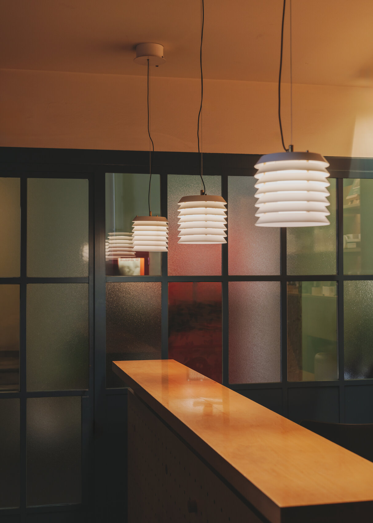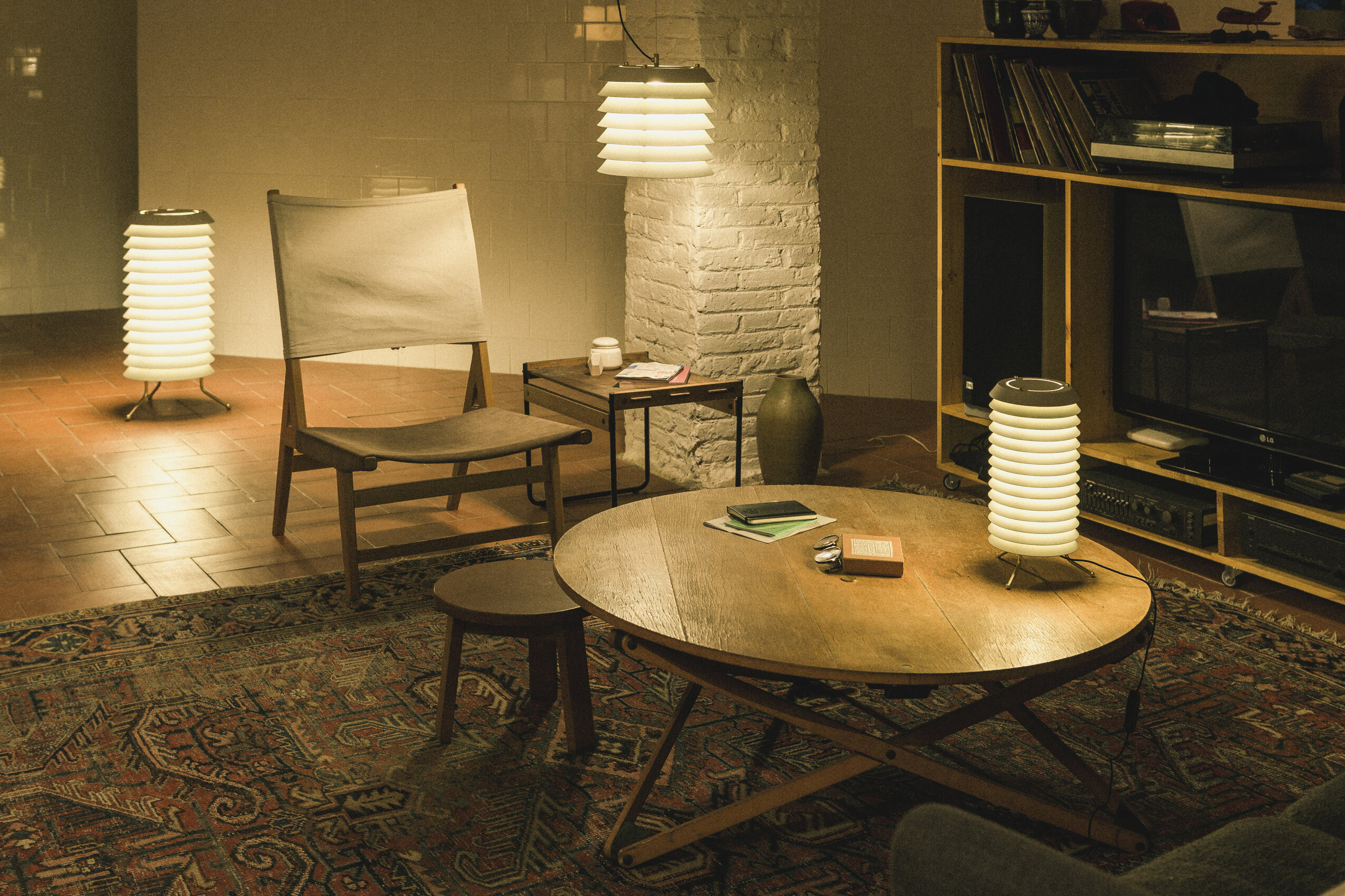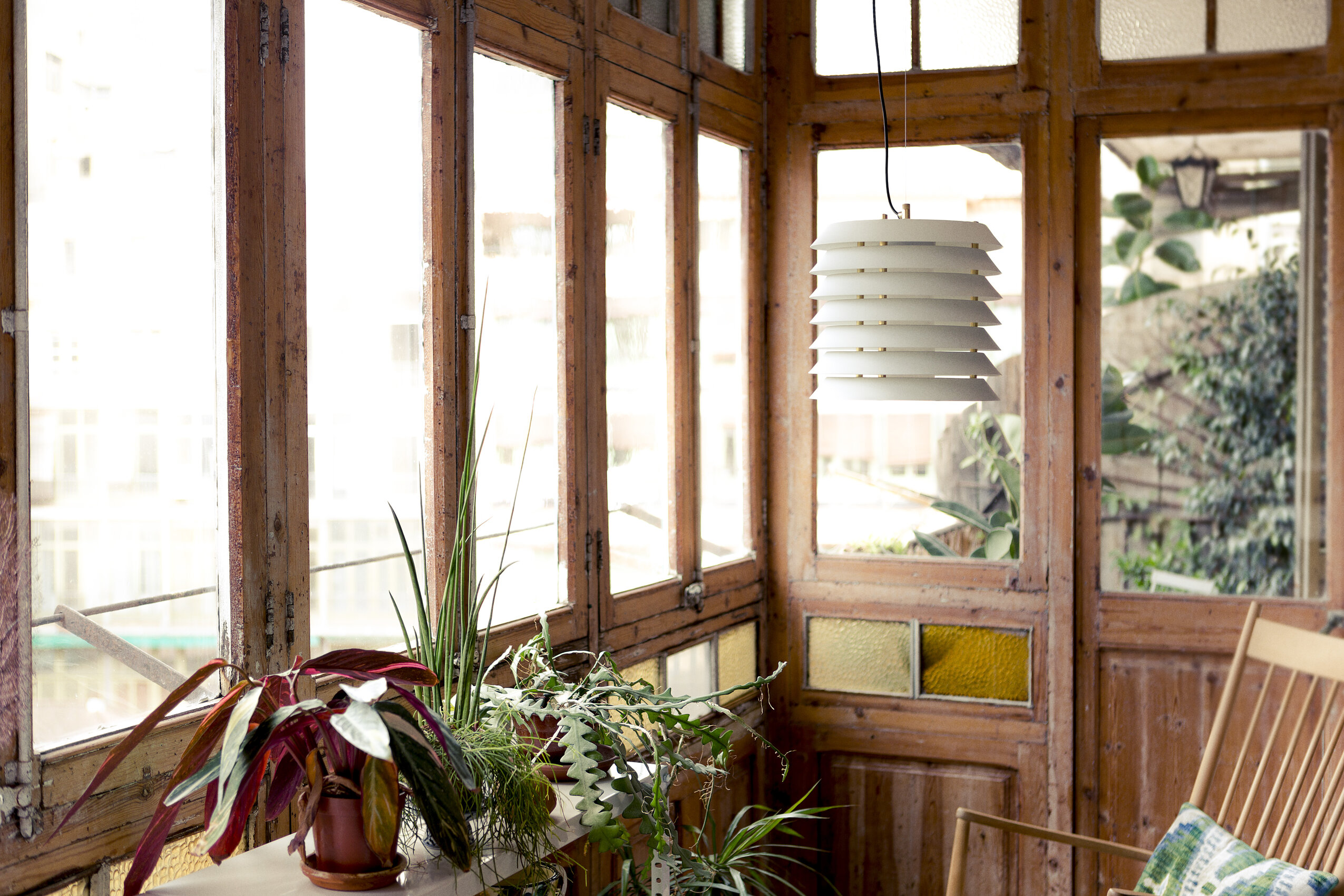 Подвесной светильник Maija pendant словно переносит нас в атмосферу балтийских городов, где тёплый свет из домов мягко пробивается наружу, наполняя улицы уютным сиянием. Его необычная форма напоминает башню из аккуратно сложенных металлических дисков, сквозь которые пробивается свет, создавая эффект живых сверкающих сот.