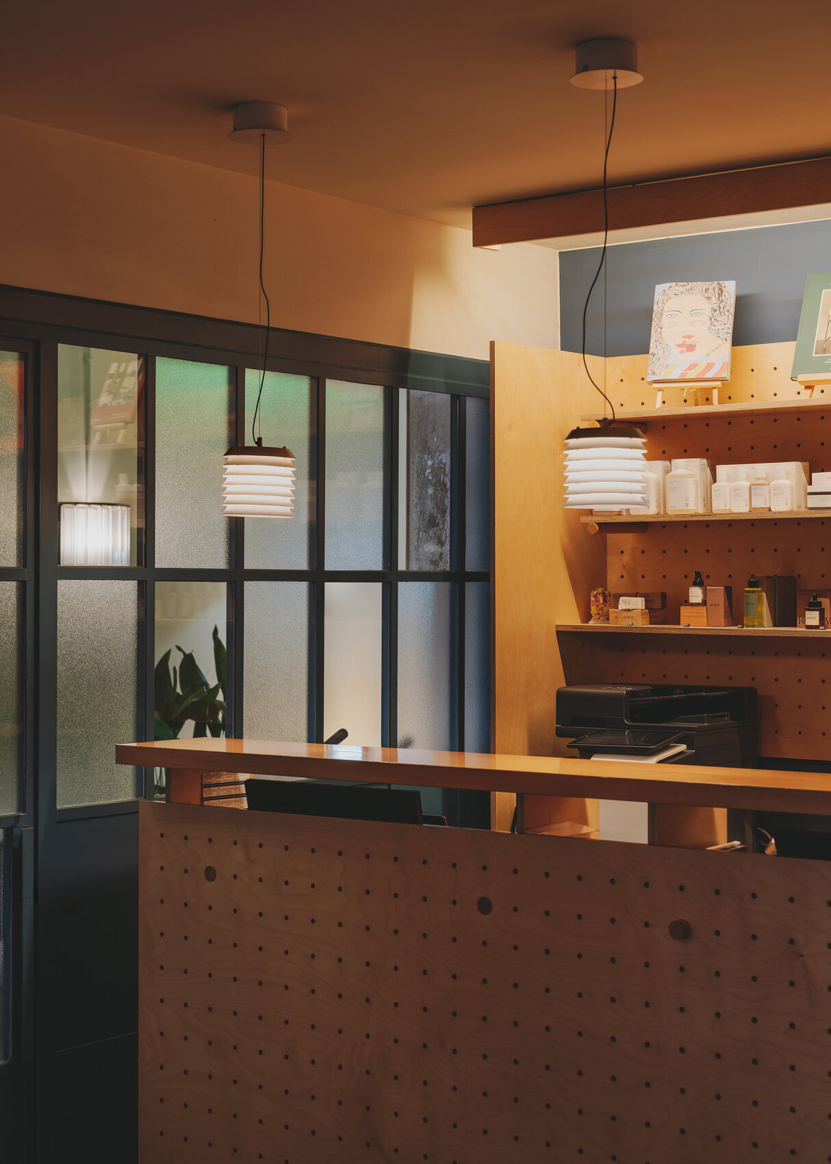 Латунная основа светильника покрыта матовой отделкой. Это придаёт ему сдержанную элегантность. Белый полупрозрачный стеклянный рассеиватель мягко фильтрует свет. Делает его тёплым и обволакивающим — словно отблеск домашнего очага, разливающийся по пространству.