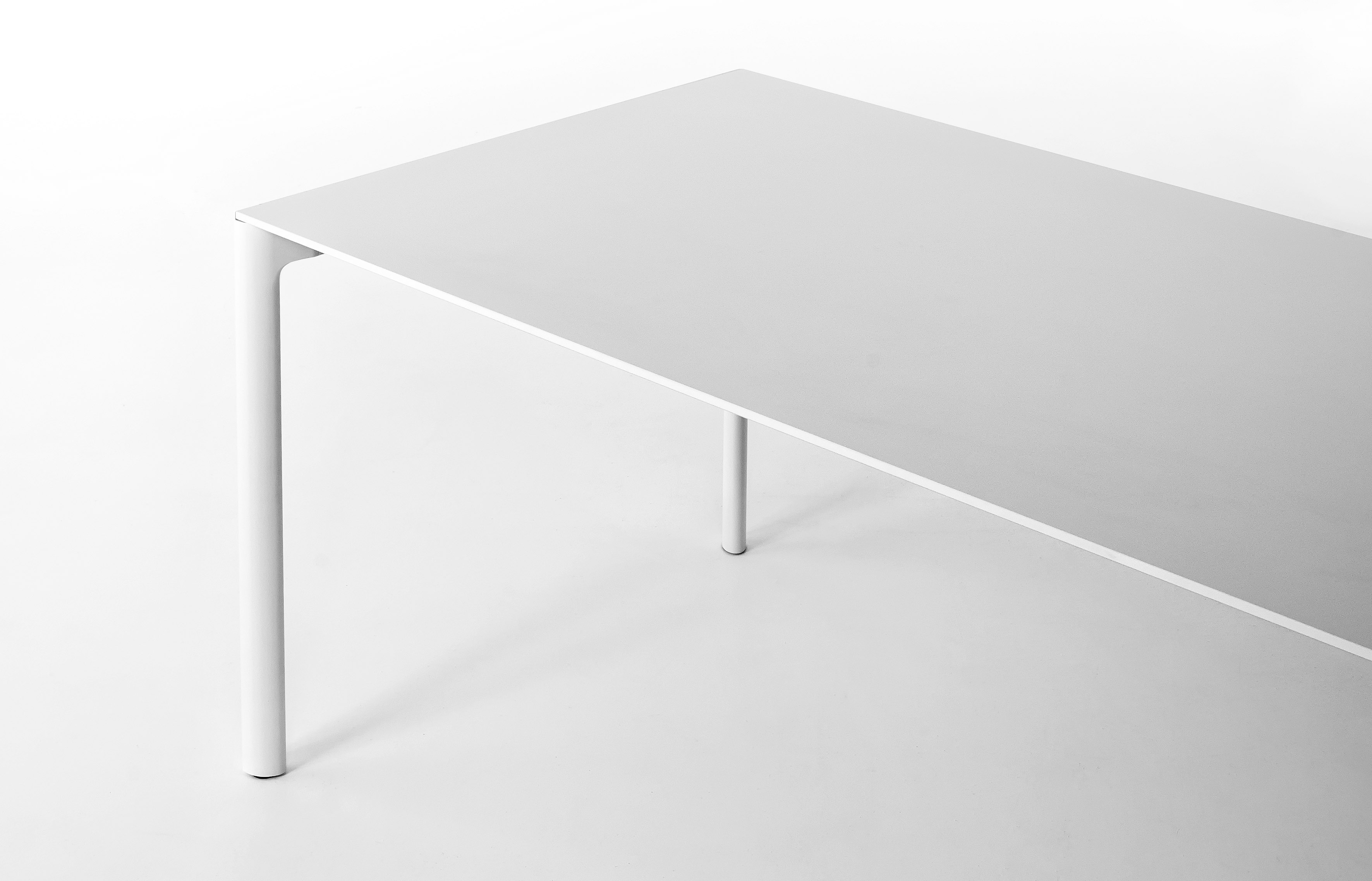 Ножки стола Maki изготавливаются из алюминия и окрашиваются в различные цвета. Прямоугольная столешница выполняется из ламината или стекла. Доступно множество вариантов цвета и размера стола. Есть возможность заказать модель с раздвижным топом. Детали о данной модели уточняйте у менеджеров или в PDF инструкции.
