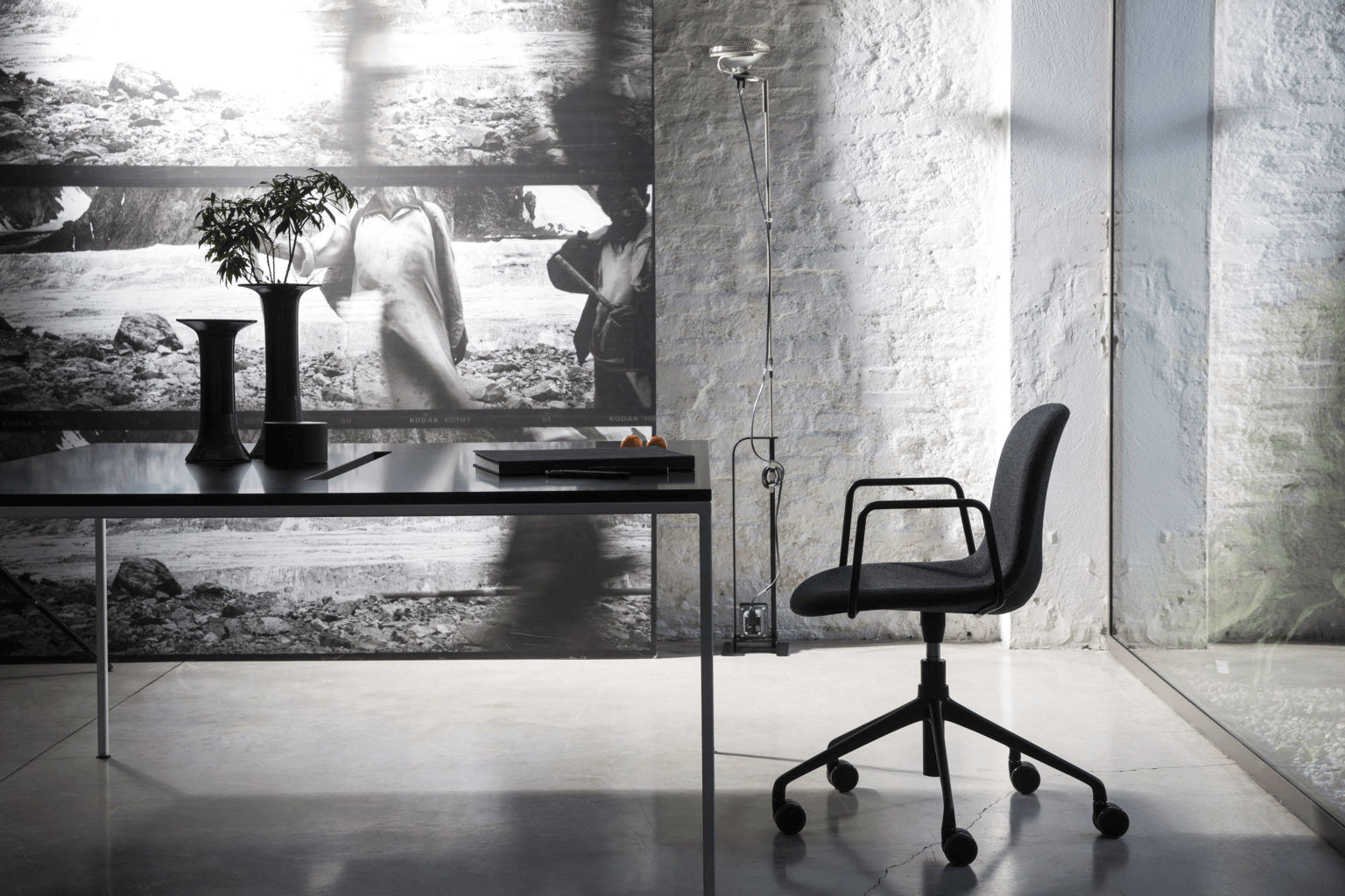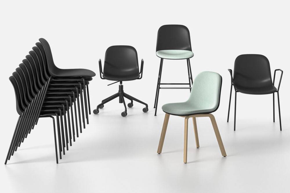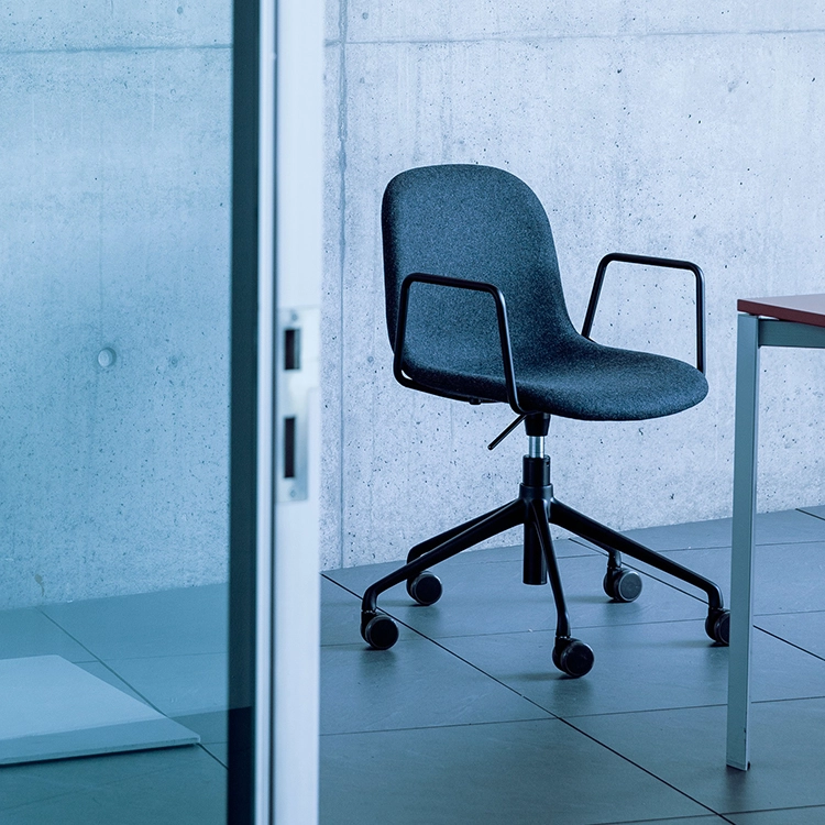 В основе коллекции лежат два варианта исполнения, предназначенные для разных задач. Модель AR-HO-4 отличается фиксированной четырехлучевой опорой, обеспечивающей стабильность, в то время как базовая модель AR-HO предлагает большую мобильность и комфорт за счет вращающегося механизма и пятилучевой крестовины на роликах, позволяющей легко перемещаться. Опора, выполненная из полированного или окрашенного алюминия, придает конструкции визуальную легкость и прочность.