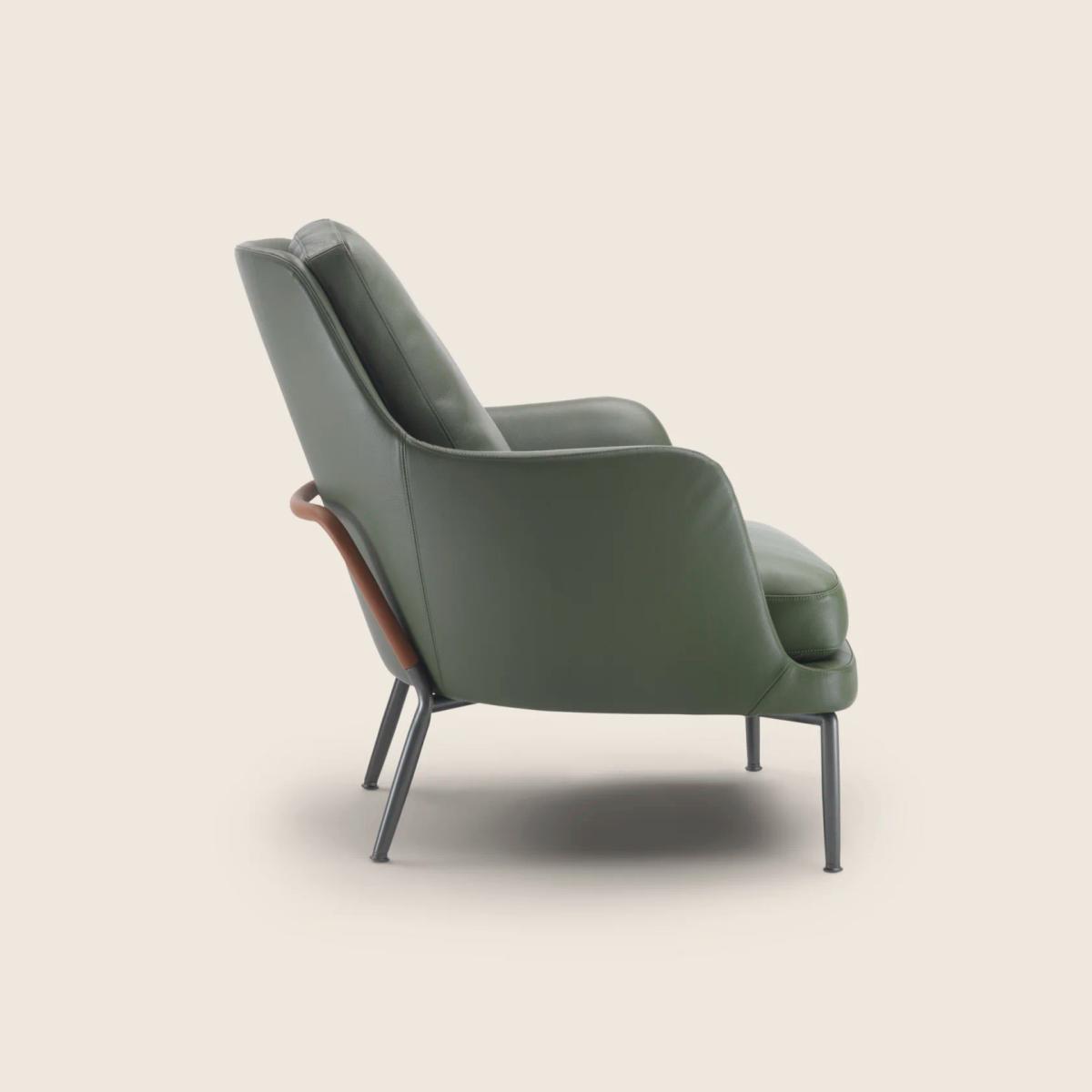 Прочный металлический каркас в сочетании с пенополиуретаном премиум-класса гарантируют надежность и долгий срок службы кресла. Наполнение подушки сиденья состоит из стерильного гусиного пуха, сертифицированного знаком качества Assopiuma (Gold Label). Для повышения комфорта и улучшения поддержки в подушку вставлен элемент из упругого материала с изменяющейся плотностью. Подушка спинки наполненная гусиным пухом, что придает креслу не только элегантный внешний вид, но и исключительный комфорт.