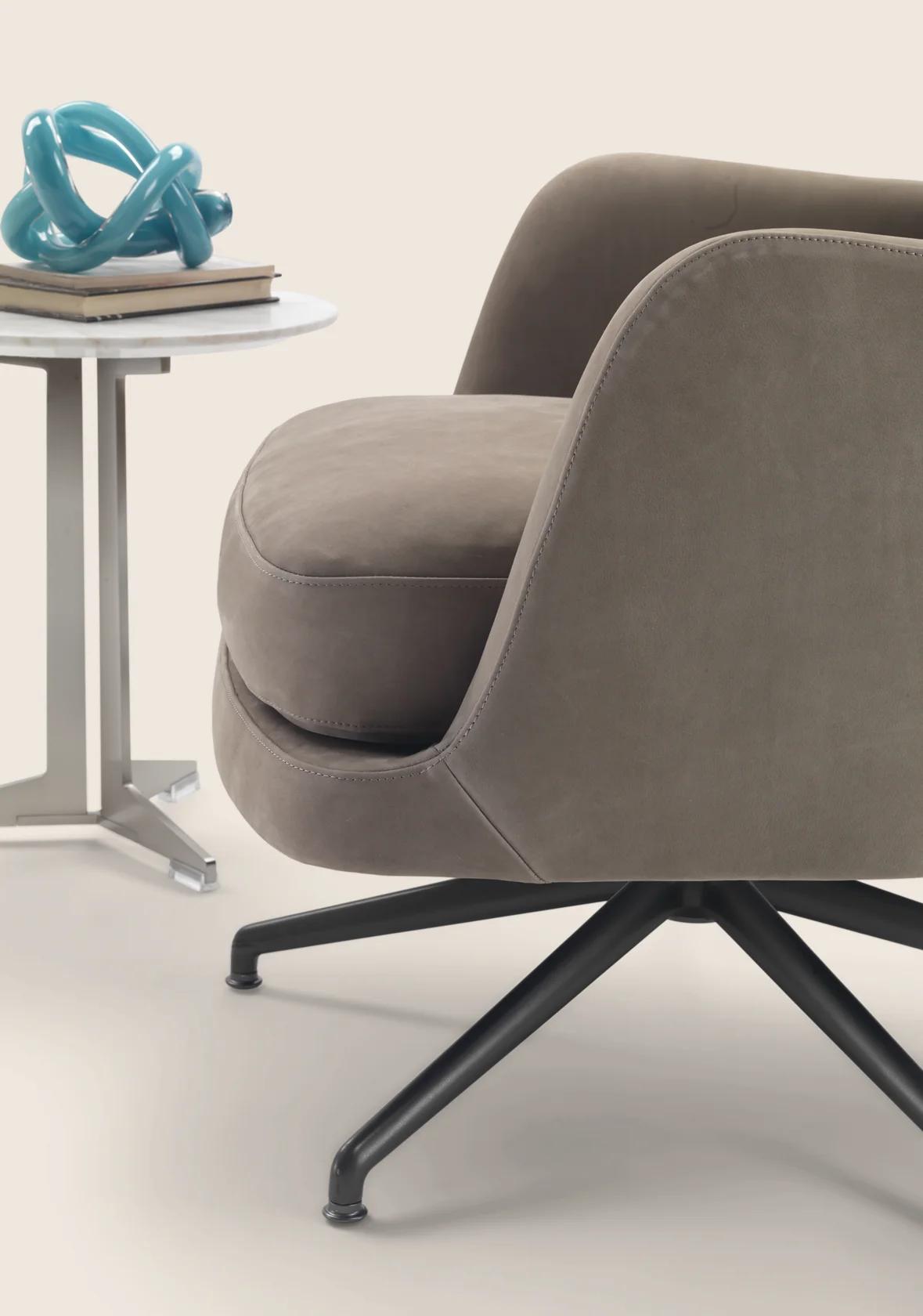 Опора кресла Marley предлагается в различных вариантах, что позволяет подобрать модель под конкретные задачи и стилистические предпочтения. Вращающаяся опора из литого под давлением алюминия доступна в нескольких вариантах отделки: сатинированная, хромированная, вороненая, черный хром, глянцевый антрацит или матовый титан. Термопластичные материалы, использованные для изготовления окончаний, обеспечивают повышенную прочность и улучшают внешний вид изделия. А так же неподвижная опора изготовленная из металла, имеет аналогичные варианты отделки. Ручка кресла обтянута кожей, а выбор конкретного материала зависит от технических возможностей и ваших предпочтений. Одной из ключевых особенностей серии Marley является функциональность. Например, в некоторых моделях металлический каркас дополнен деталью, обтянутой кожей с задней стороны. Эта деталь не только украшает кресло, но и служит удобной ручкой для перемещения мебели по помещению. Такая продуманная конструкция делает кресло практичным и легким в использовании.