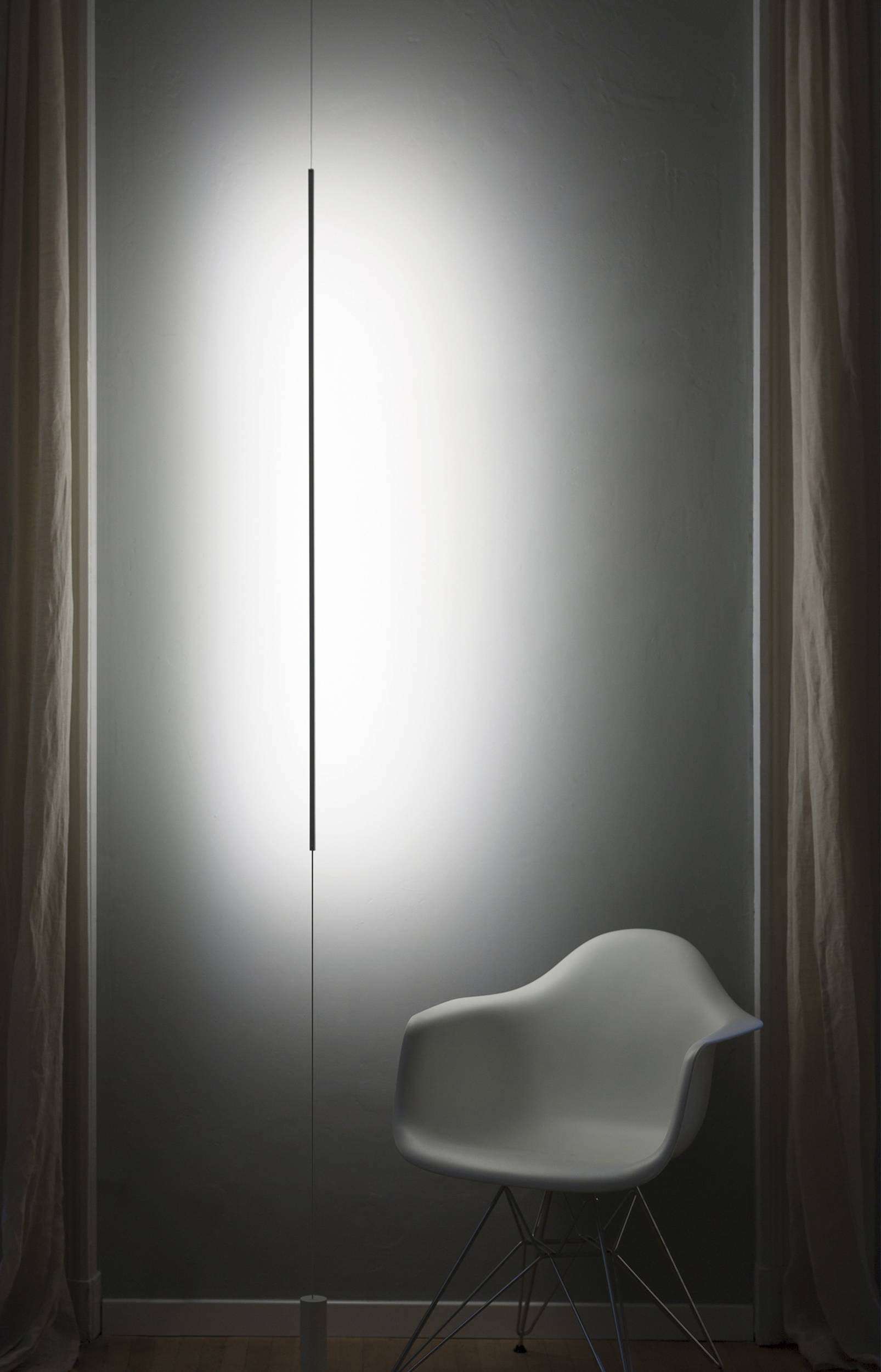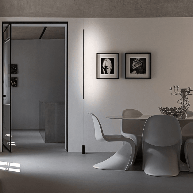 Светильник Masai от итальянского бренда Davide Groppi, разработанный дизайнером Маурицио Манчини в 2015 году, воплощает принципы минимализма. Его лаконичный дизайн с тонким профилем и регулируемым светом идеально подходит для создания направленного освещения, которое подчёркивает важные элементы интерьера, не становясь его центральным акцентом.