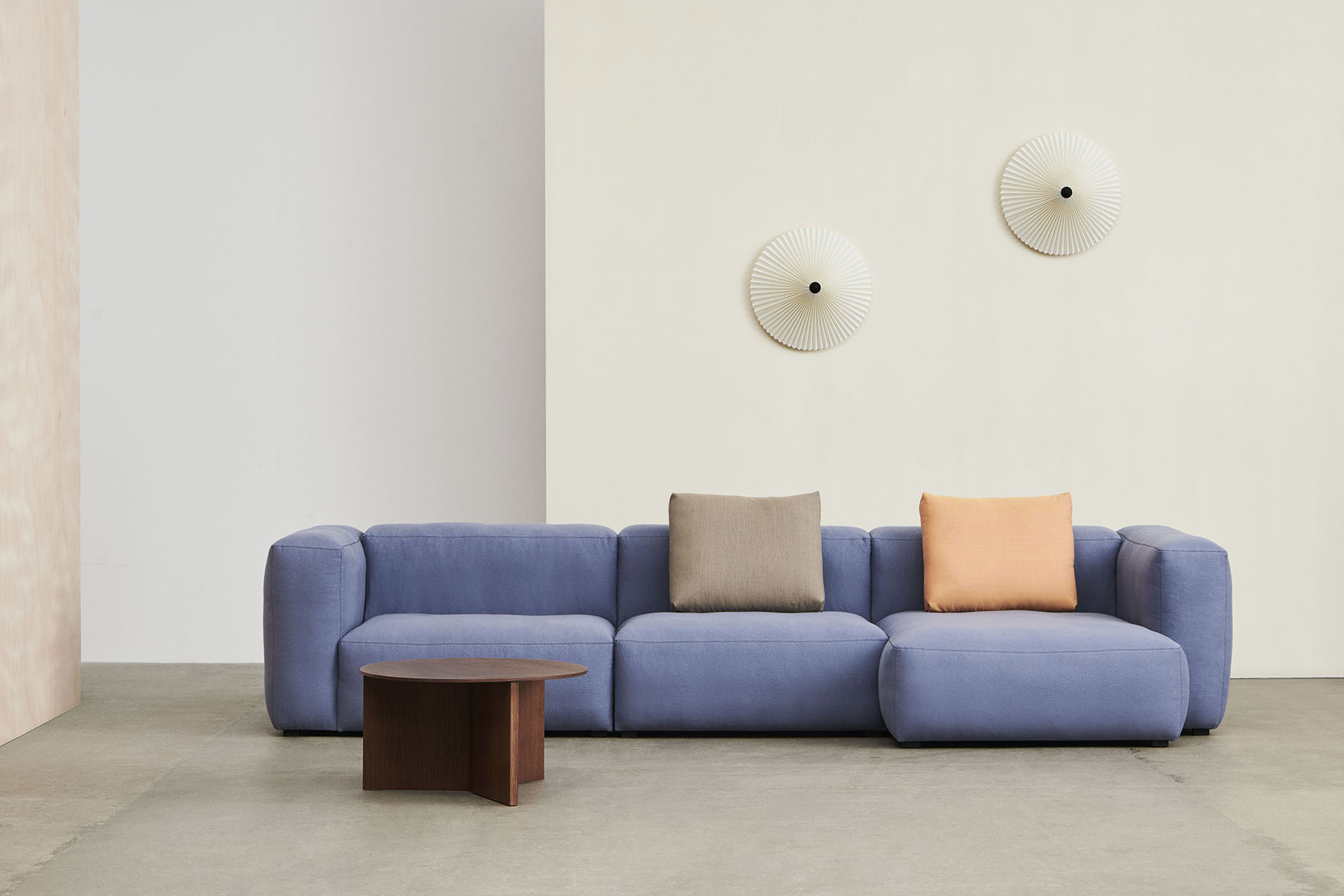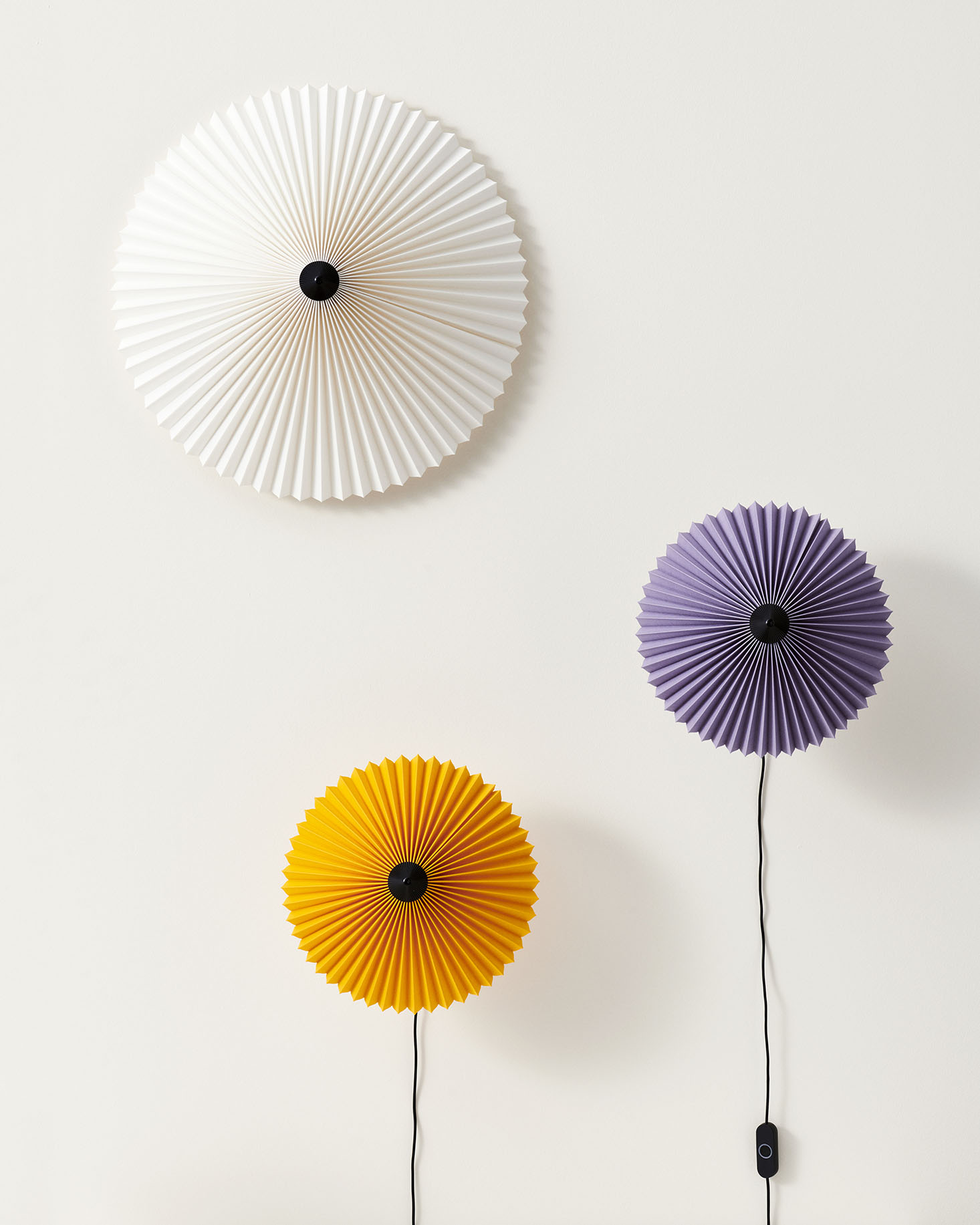 Главная деталь — хлопковый абажур со складной конструкцией. Такое решение не только красиво, но и функционально: оно помогает менять световые акценты в комнате. Хлопок делает свет мягким и тёплым. Свет равномерно распределяется по комнате и создаёт уютную атмосферу. Есть два размера абажура — можно выбрать подходящий под размеры помещения. А разнообразие цветов позволяет вписать светильник в любой интерьер: от спокойных тонов до ярких решений.