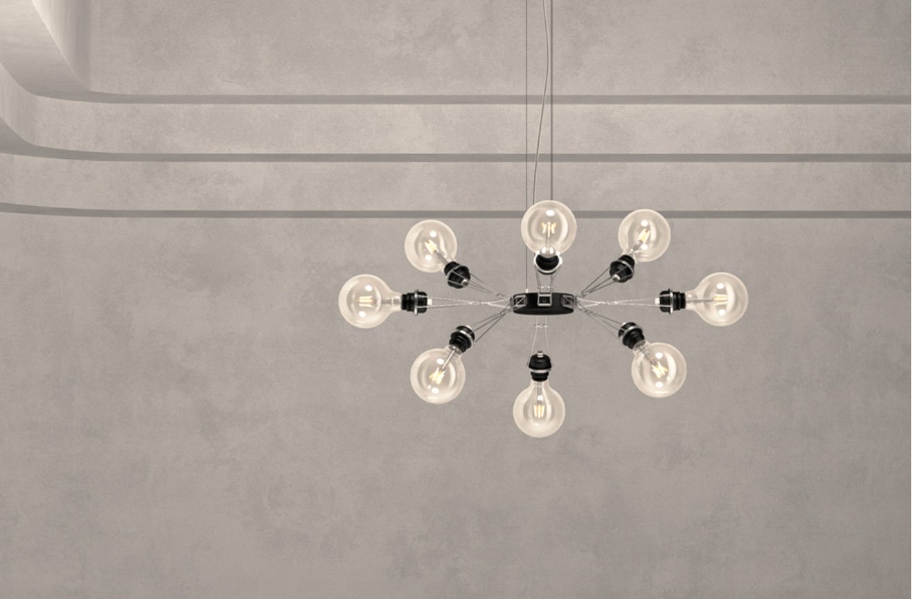 Одной из самых выразительных моделей в этой серии является подвесной светильник Matrix Otto. Его оригинальная конструкция состоит из восьми тонких стальных кронштейнов, расходящихся в виде звезды. Эти динамичные формы напоминают щупальца механического осьминога. На концах кронштейнов расположены цоколи E27, которые обеспечивают равномерное распространение света во всех направлениях. Несмотря на гибкость конструкции, светильник сохраняет баланс и гармоничное свечение. Независимо от того, как именно изогнуты его «лучи».