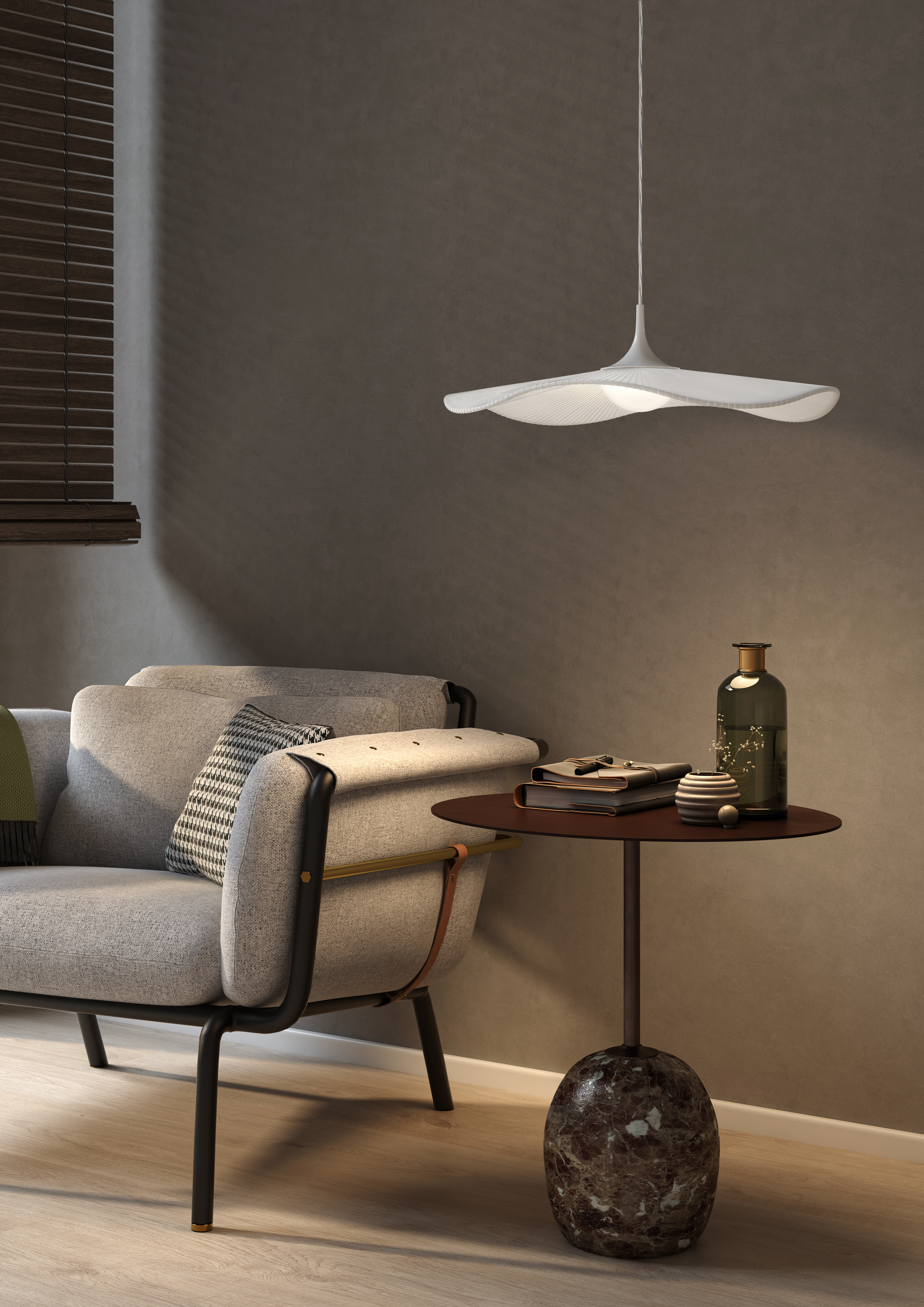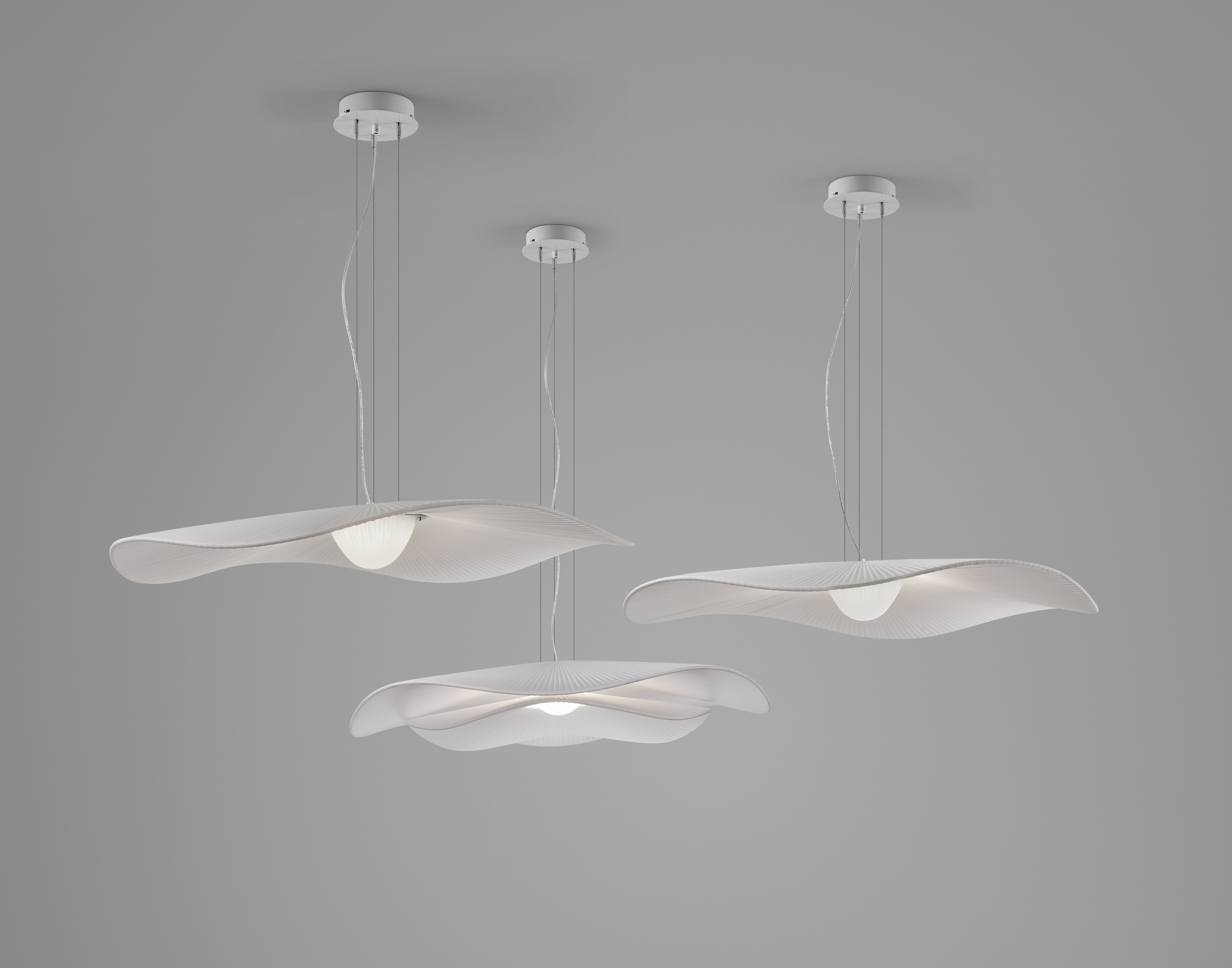 Форма светильников напоминает мягкие волны моря, плавно перетекающие друг в друга, словно отражая движение солнечных лучей в разное время суток. Это качество делает их идеальным дополнением для пространств с четкой геометрией, позволяя мягко сгладить углы и придать помещению уют и тепло.