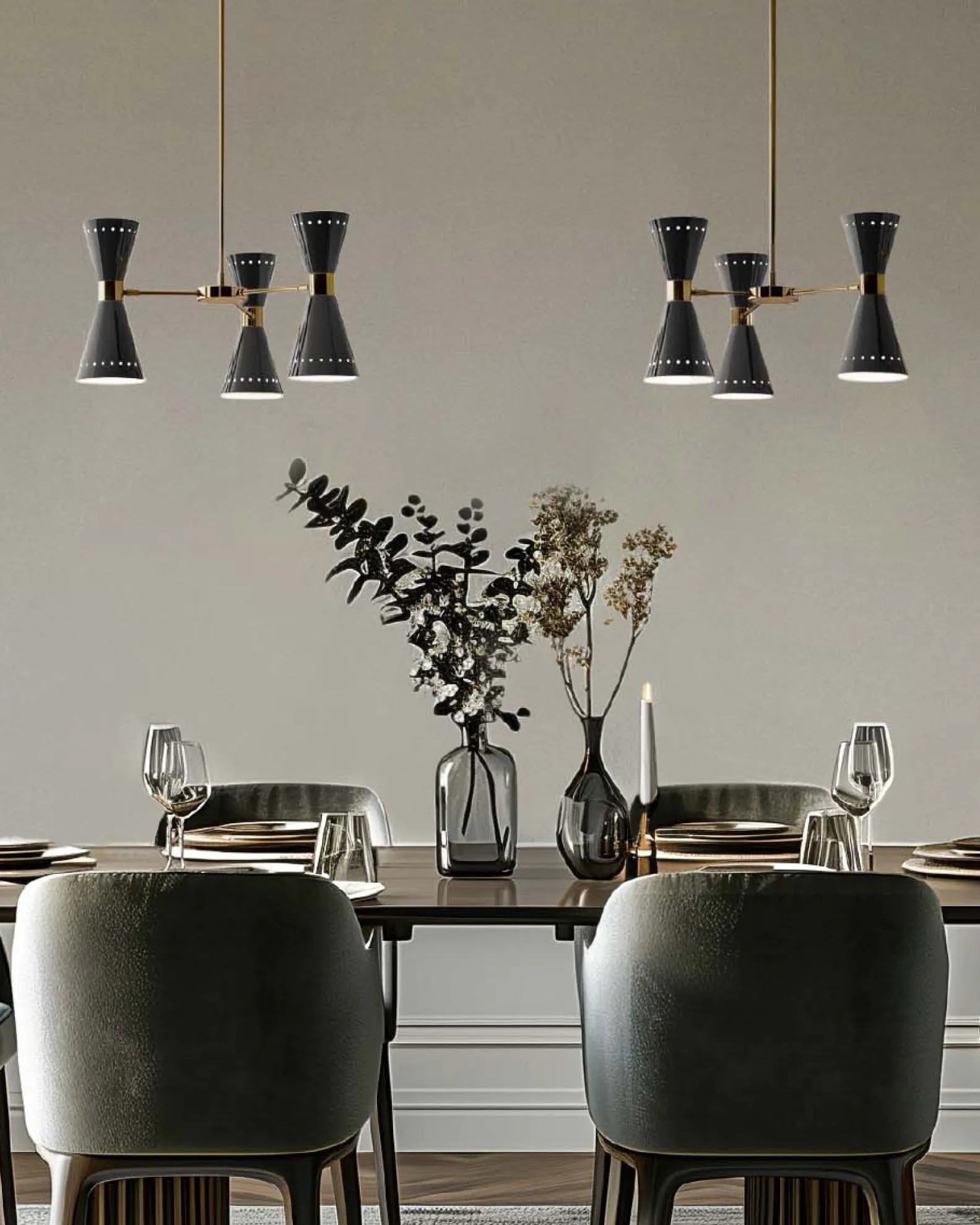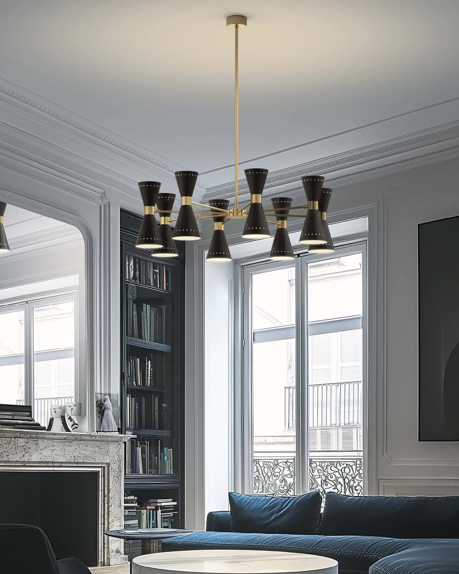 Megafono suspension предлагается в трёх вариантах — с тремя, шестью или восемью кронштейнами. Это позволяет подобрать модель для любого пространства: от небольшой гостиной до просторного общественного помещения. На выбор представлены два цветовых решения — глянцевый чёрный и цвет слоновой кости, которые легко впишутся в разные стили интерьера.