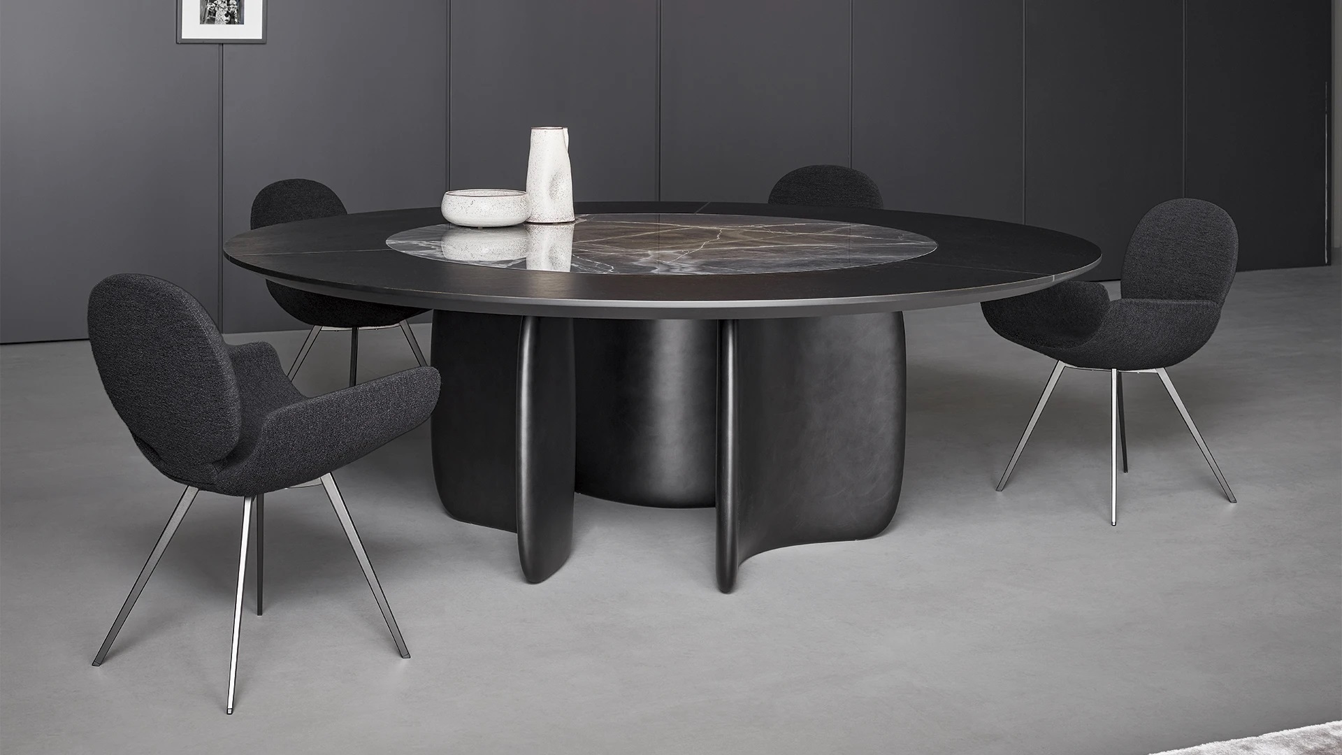 Mellow создан как центральный элемент интерьера. Он переосмысливает традиционные массивные модели обеденных столов, адаптируя их под современные требования пространства и эстетики. Для офисных и контрактных проектов предусмотрен удлинённый вариант — Mellow 400 с длиной 4 метра, идеально подходящий для больших помещений.