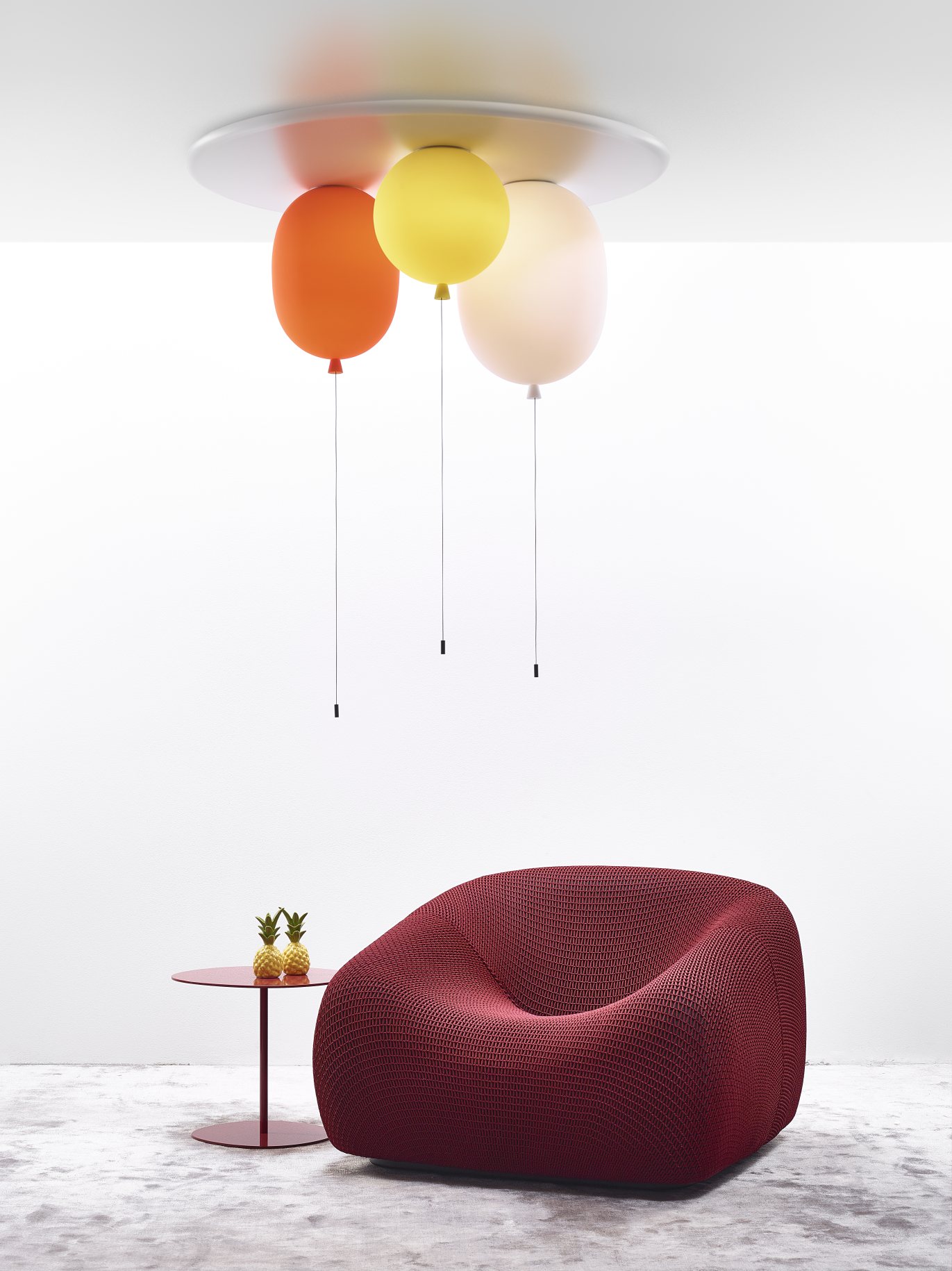 Потолочный светильник Memory set напоминает воздушные шары из детства. Смотришь на него — и словно возвращаешься в беззаботные времена праздников и радости.