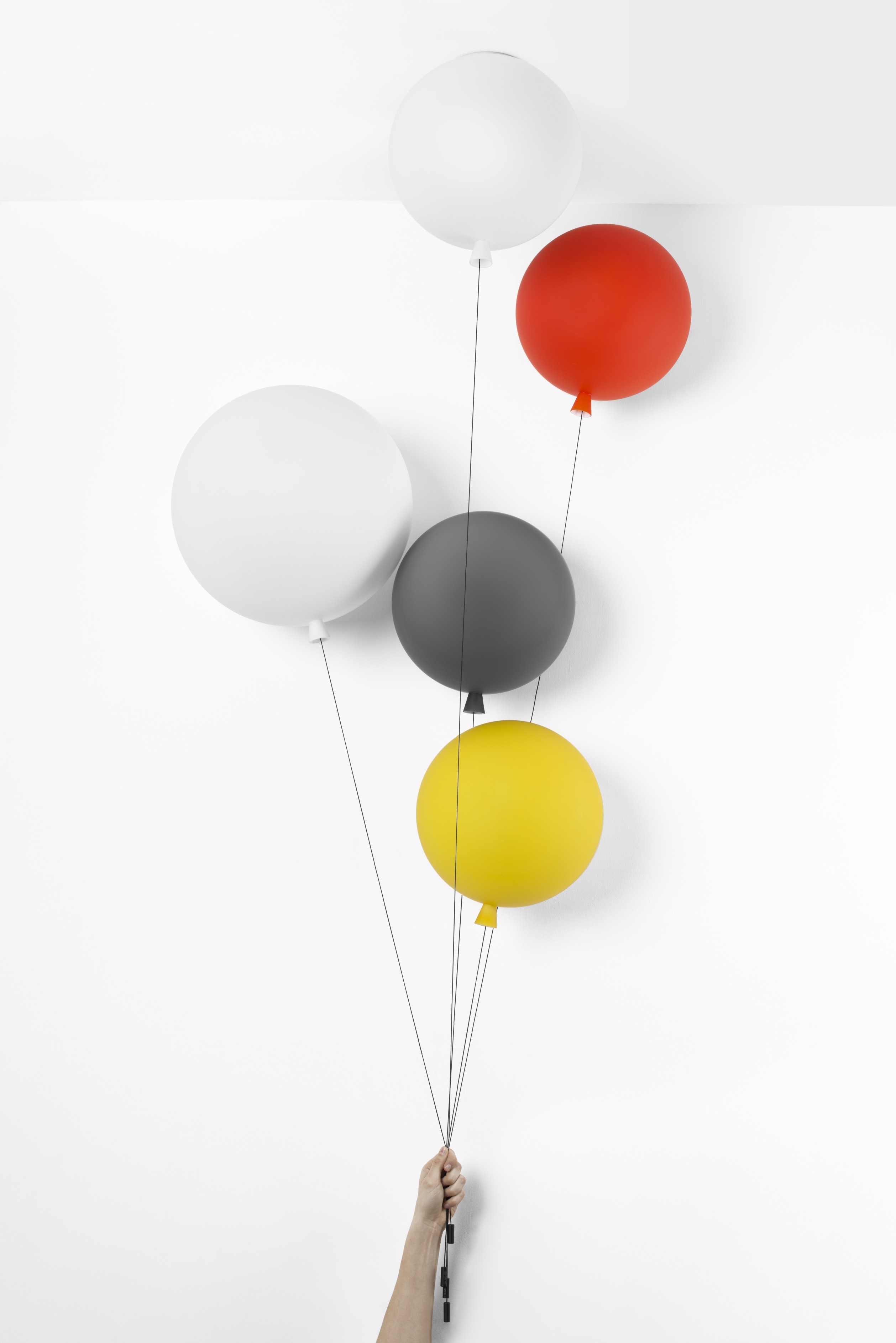 Особенно впечатляет иллюзия надутых воздушных шаров, которая достигается в дизайне светильника. Детали проработаны так тщательно, что создаётся ощущение реальности: вплоть до свисающей нити, которая служит для включения и выключения света. Эта нить не только функциональна, но и добавляет завершённости образу светильника.