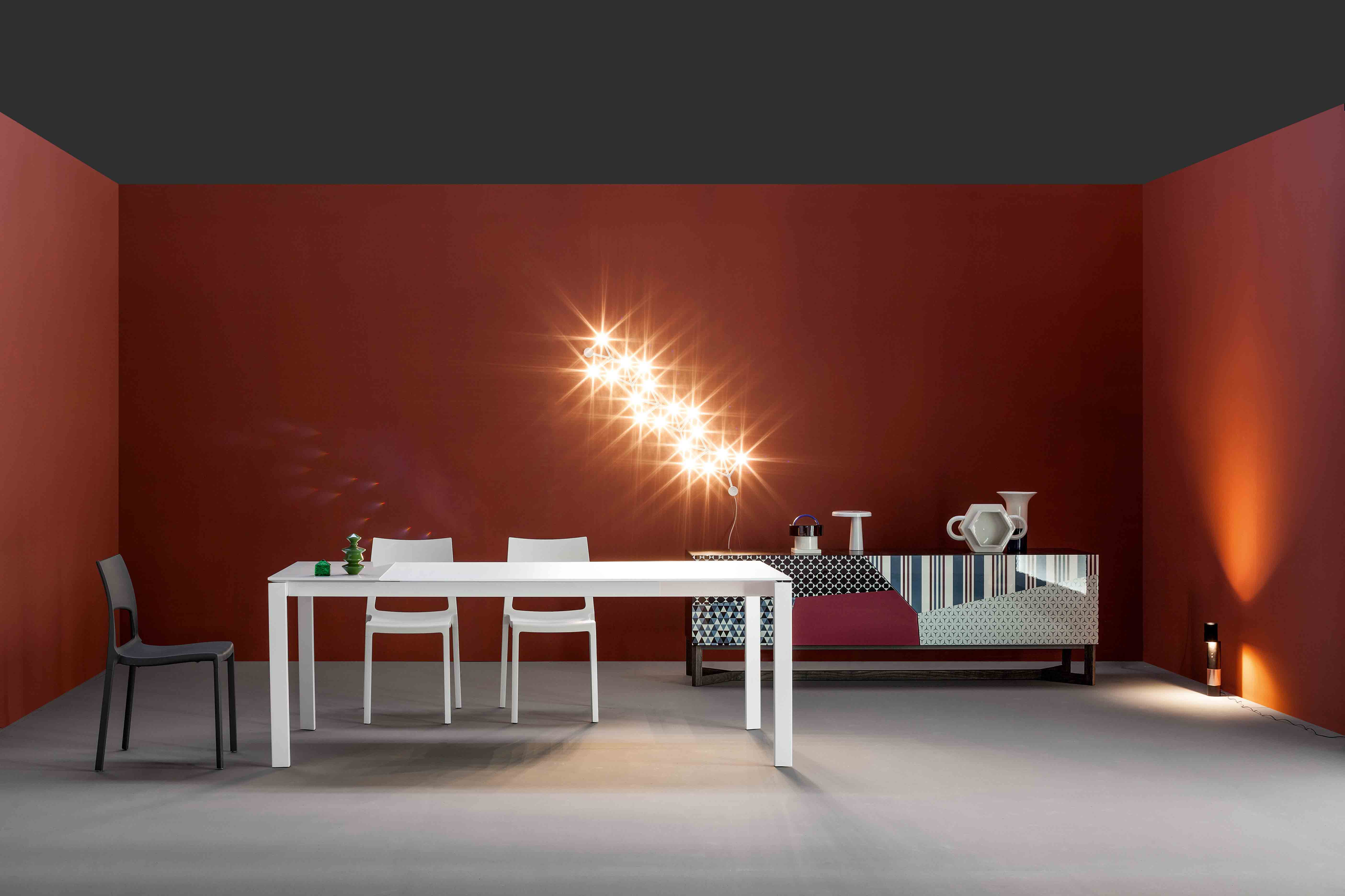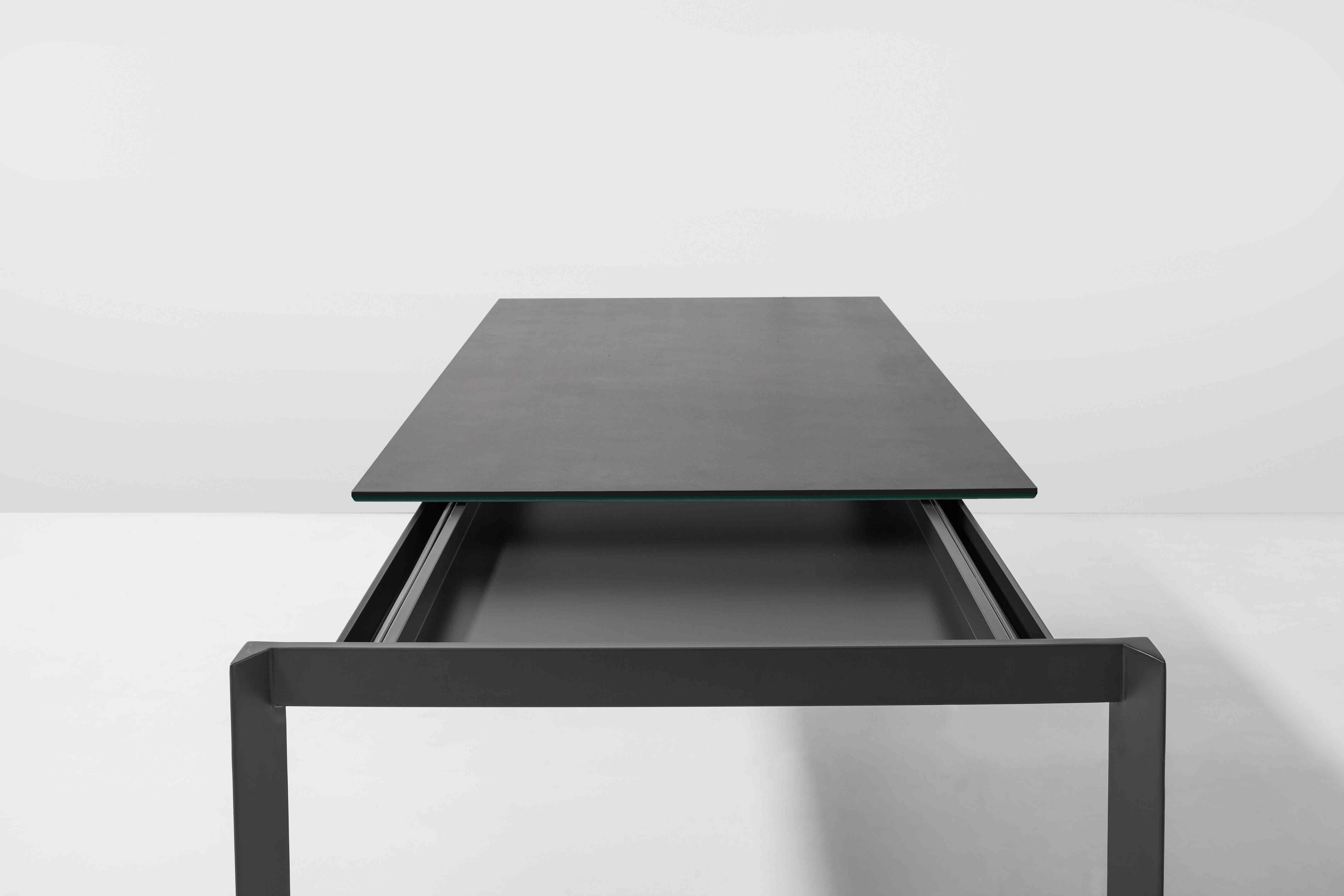 Столешница стола Menu может быть выполнена из ламинированного или лакированного дерева, а также из стекла или керамики. Стол доступен в двух вариантах: с регулируемой и нерегулируемой по длине столешницей. Раздвижная металлическая рама позволяет при необходимости быстро и легко увеличить количество посадочных мест. Модель доступна в различных цветовых вариантах и может быть выполнена в шести размерах. Более подробную информацию можно уточнить у менеджера.