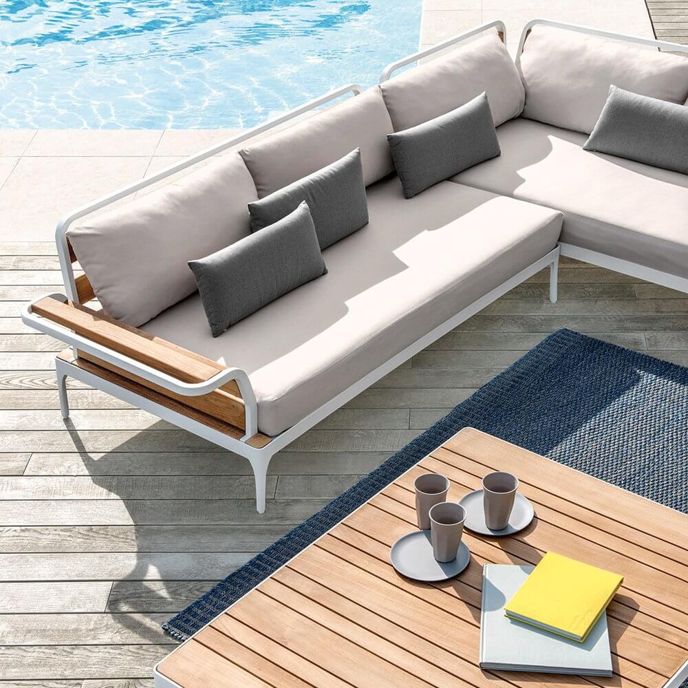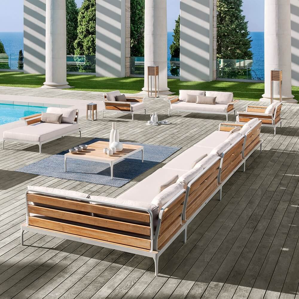 Meridien — удобный, мягкий диван от фабрики Ethimo. Основание модели изготавливается из алюминия, а подлокотники и спинка из натурального тика. Сиденье дивана выполнено из акрила. Модель может быть дополнена подушками. В коллекцию Meridien также входит кресло, пуф, кофейный столик, стулья и модульный диван. Дополнительно можно приобрести чехол от дождя. Более подробную информацию и доступные расцветки можно уточнить у менеджера.