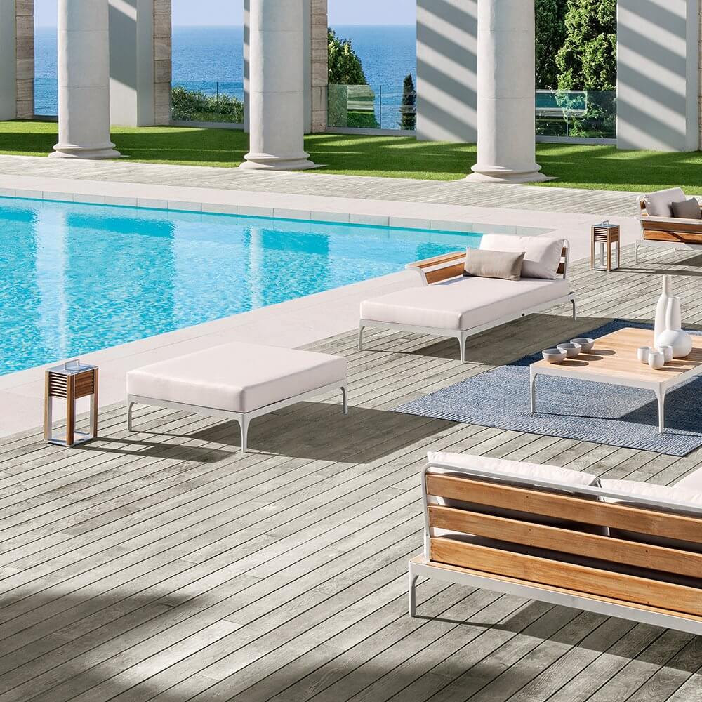 Meridien — мягкий пуф от фабрики Ethimo. Основание модели изготавливается из алюминия в белом цвете. Пуф дополнен мягкой подушкой из акрила. В коллекцию Meridien также входит кресло, кофейный столик, стулья и модульный диван. Дополнительно можно приобрести чехол от дождя. Более подробную информацию и доступные расцветки можно уточнить у менеджера.