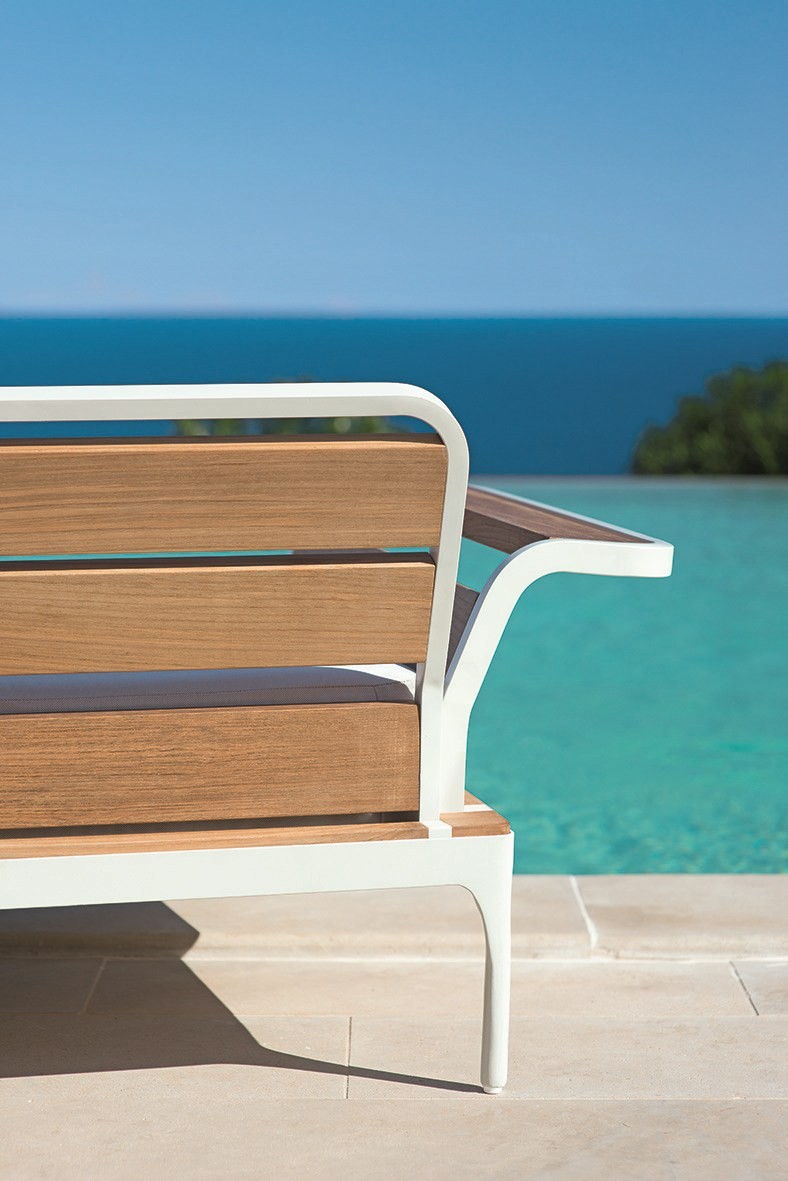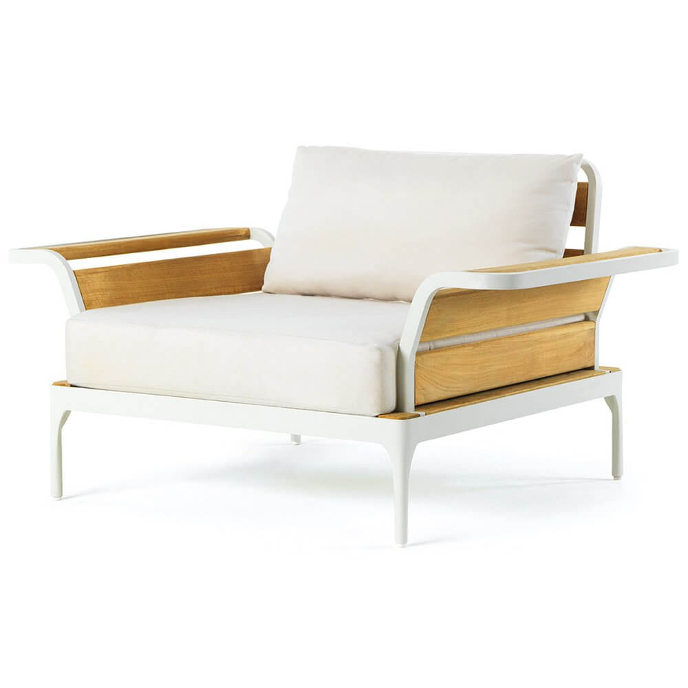 Meridien — удобное, мягкое кресло от фабрики Ethimo. Основание модели изготавливается из алюминия, а подлокотники и спинка из натурального тика. Сиденье и спинка дополнены мягкими подушками из акрила. В коллекцию Meridien также входит пуф, кофейный столик, стулья и модульный диван. Дополнительно можно приобрести чехол от дождя. Более подробную информацию и доступные расцветки можно уточнить у менеджера.