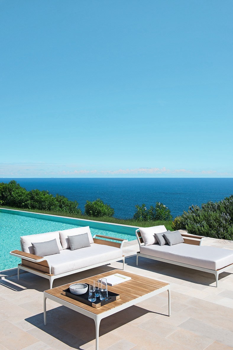 Meridien — удобный, мягкий трехместный диван от фабрики Ethimo. Основание модели изготавливается из алюминия, а подлокотники из натурального тика. Сиденье и спинка дивана выполнены из акрила. В коллекцию Meridien также входит кресло, пуф, кофейный столик, стулья и модульный диван. Дополнительно можно приобрести чехол от дождя. Более подробную информацию и доступные расцветки можно уточнить у менеджера.