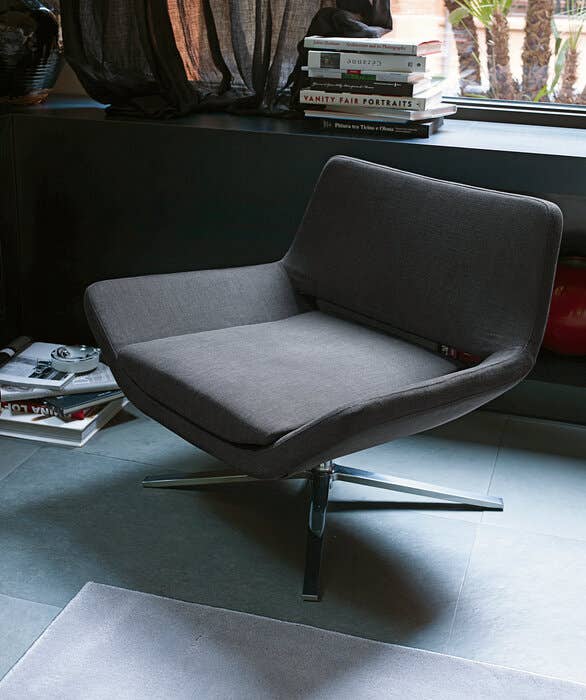 Поворотное основание, выполненное из алюминия с четырьмя изящными спицами, придаёт креслу лёгкость и динамичность. Этот элемент не только визуально обогащает конструкцию, но и обеспечивает плавное вращение, позволяя с лёгкостью менять положение. Благодаря этому кресло становится не просто предметом мебели, а интерактивным пространством для отдыха, где каждое движение ощущается естественно и непринуждённо.