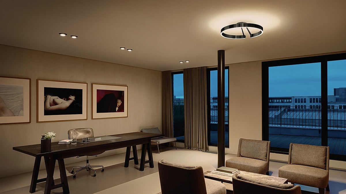 Потолочные светильники Mito aura lusso переосмыслены благодаря использованию кожи Ascot ручной работы. Этот благородный материал с открытой структурой пор притягивает взгляд своей природной элегантностью, а искусно выполненные строчки арок из карбона подчеркивают высочайший уровень мастерства и внимания к деталям.