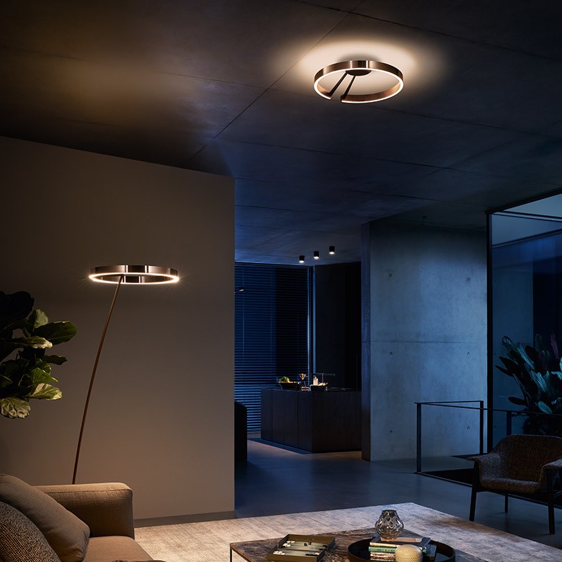 Металлические кольца Mito, обработанные методом патинирования или анодирования, придают светильнику выразительность и глубину. Их сложная текстура, нанесенная вручную кистью, создает эффект живого мерцания, а богатая палитра оттенков гармонично вписывается в современные интерьерные тенденции, становясь ярким акцентом в любом пространстве.