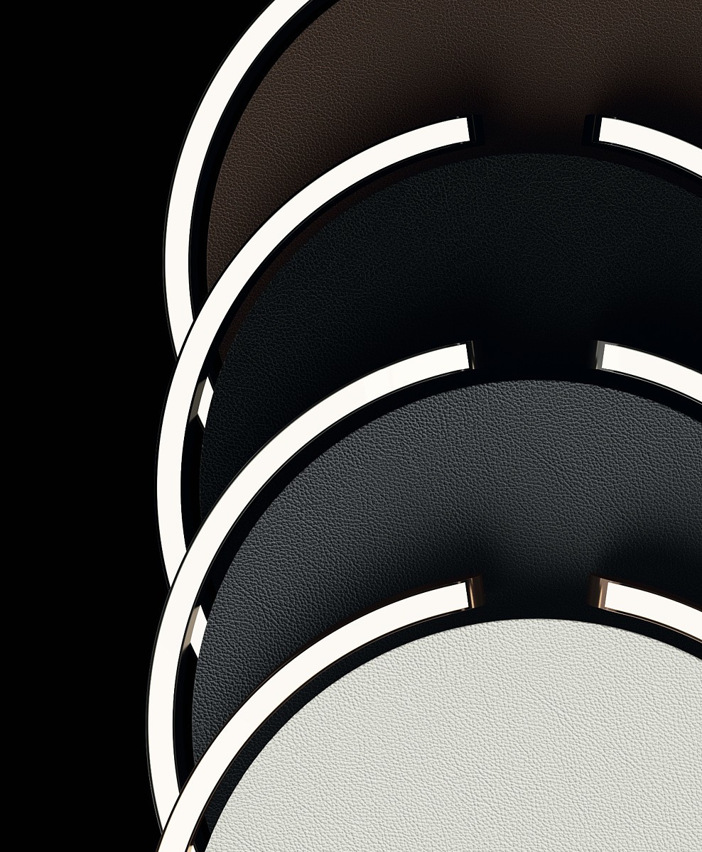 Версия Edizione Lusso воплощает в себе дух роскоши благодаря использованию натуральной кожи Ascot, которая привносит в современный интерьер ноты благородства и утонченности. Каждый плафон изготавливается вручную, что подчеркивает его эксклюзивность. Пористая фактура кожи создает мягкое, рассеянное свечение, а тщательная прострочка углеродных нитей демонстрирует внимание к деталям и высочайший уровень мастерства.