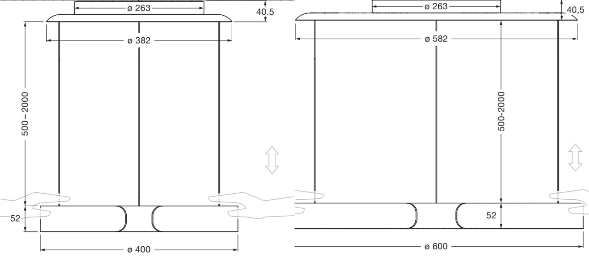 Доступный в двух диаметрах — 40 и 60 см, — светильник гармонично вписывается в различные интерьеры, сохраняя баланс между изяществом и выразительностью. Длина подвески регулируется в диапазоне от 50 до 200 см, что позволяет идеально адаптировать его под высоту потолка и концепцию освещения. Также возможна специальная длина до 500 см за дополнительную плату.