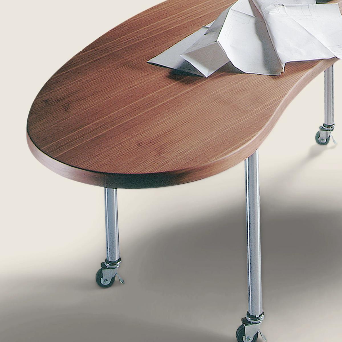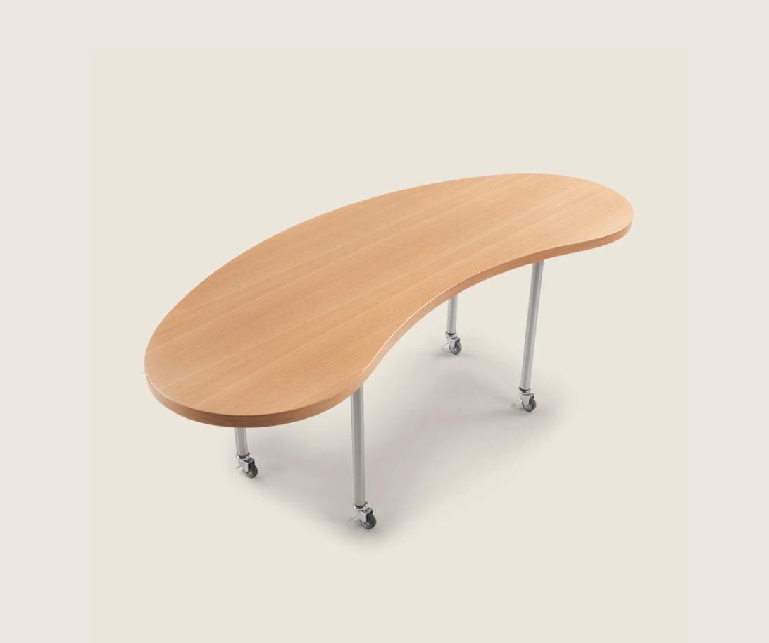 Металлические ножки с чёрной или сатинированной отделкой придают столу современный и стильный вид. Их устойчивость и прочность обеспечивают надёжную опору. Поворотные самоблокирующиеся колёса добавляют мобильности, позволяя легко перемещать стол в любое место. Это особенно удобно в открытых планировках, где важна гибкость и свобода передвижения.